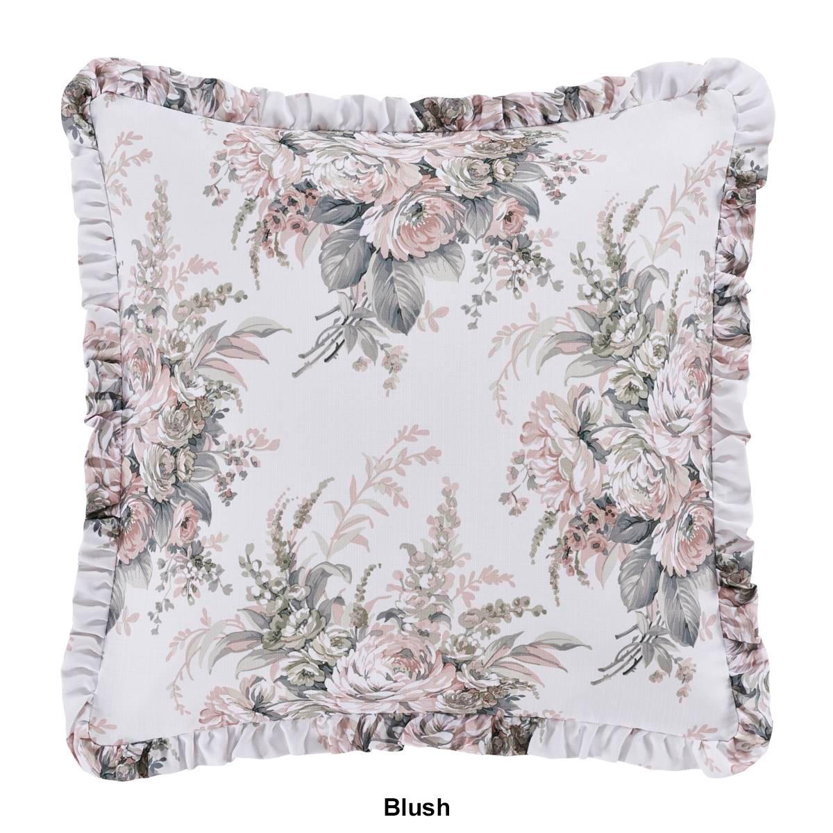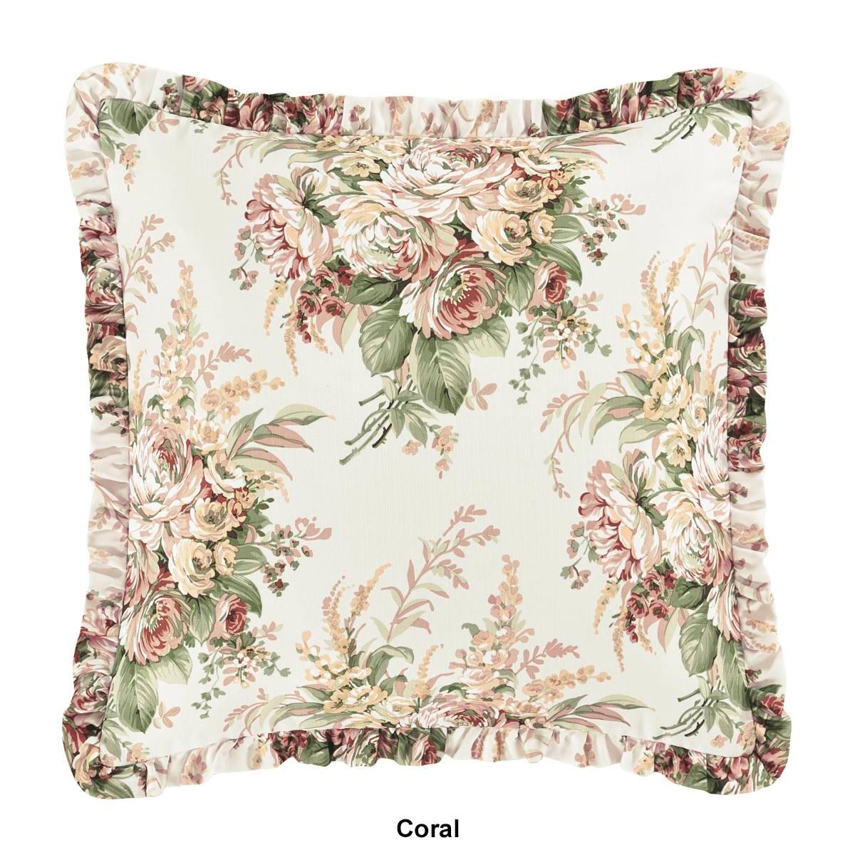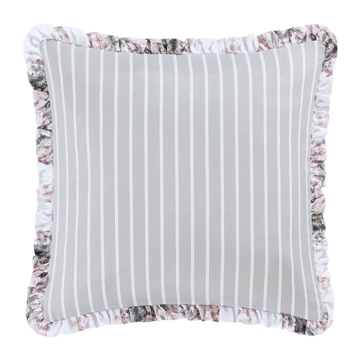 The Royal Court Estelle Euro Sham is soft and delicate. Features flourishing blooms in muted colors set upon a cream ground. This shabby chic look is adorned with ruffles around all sides and reverses to a classic stripe.