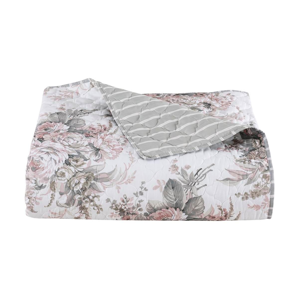 The Royal Court Estelle quilt set is soft and delicate. Features flourishing blooms of muted colors set upon a cream ground. This shabby chic quilt is enhanced with modern quilting that gives a fresh new look to your home. The quilt reverses to a stripe and comes with matching shams.