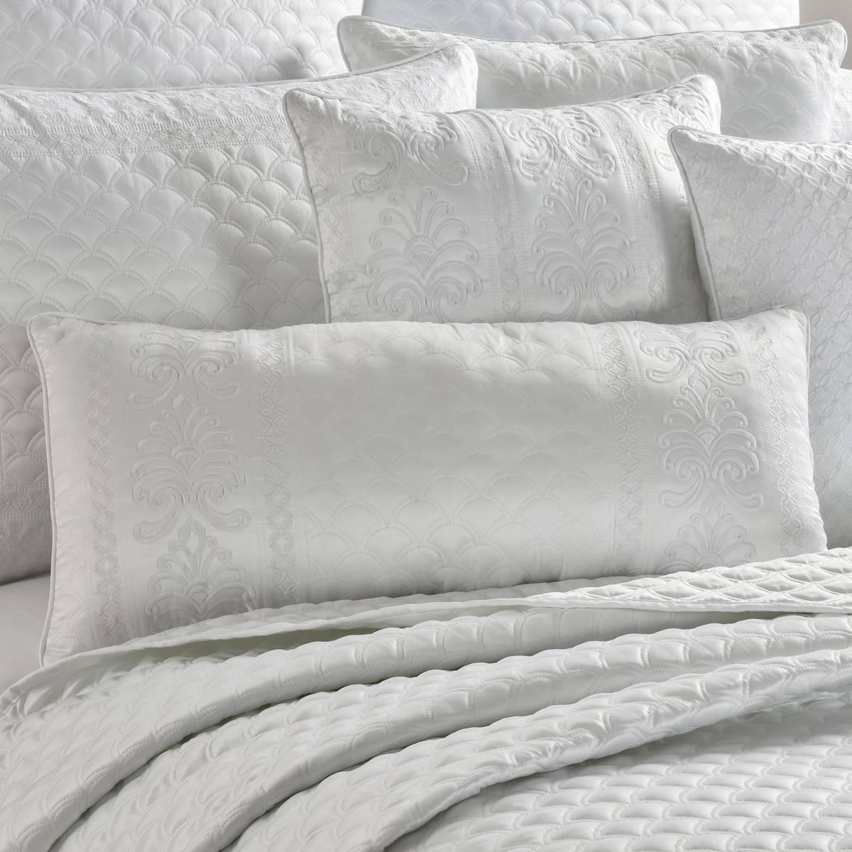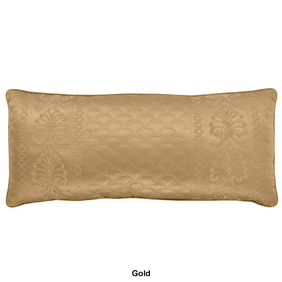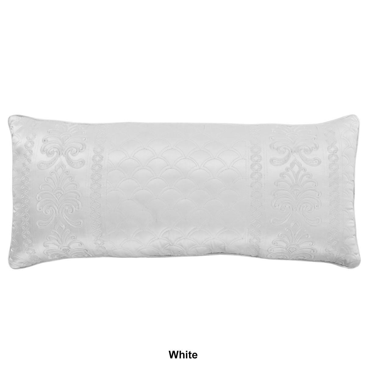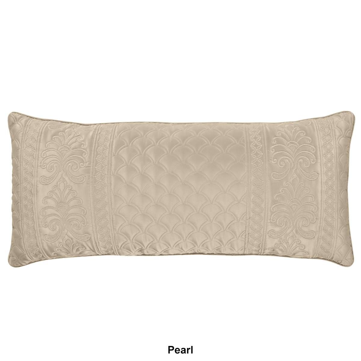 The J. Queen New York Lyndon boudoir decorative throw pillow has a subtle beauty to it that will give your room an upgrade. Features a stunning matte satin fabric, machine quilted and bordered with a timeless foulard. Finished with damask embroidered bands on both ends and accented with satin self-piping for a timeless tailored look.
