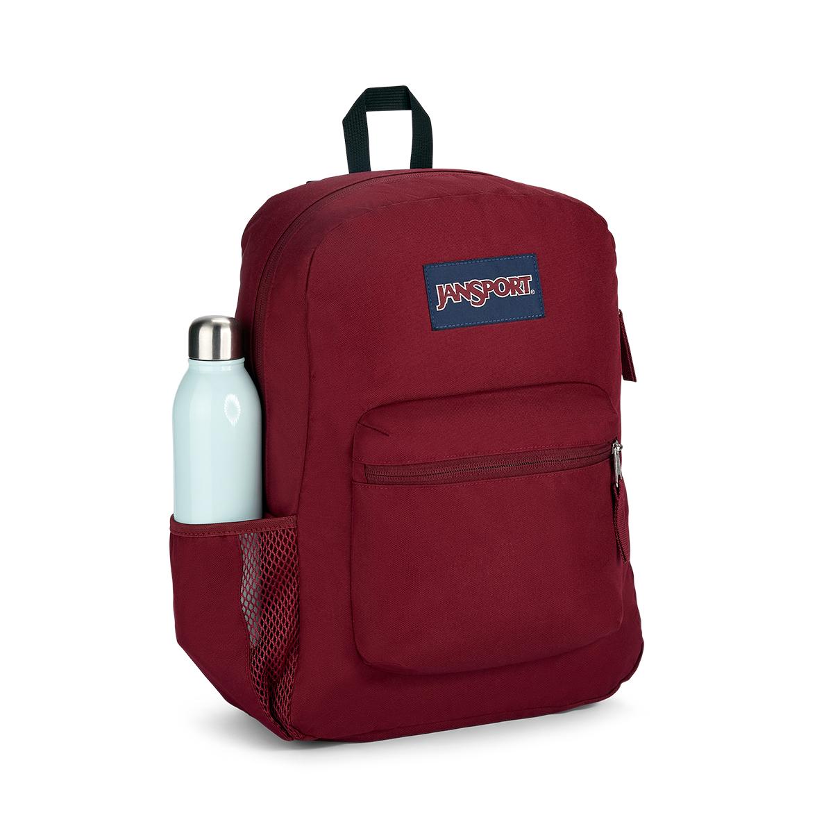 The JanSport Cross Town Backpack Pack is constructed with 600-denier PU coated polyester material. A School or Commuter pack designed to carry everything you need for the day. A large main compartment with an internal laptop sleeve. 1587 cu in / 26 L storage space. A Front utility pocket with organizer. Straight-cut shoulder straps and padded back panel help ensure comfortable carrying. Mesh side water bottle sleeve for your favorite water bottle.