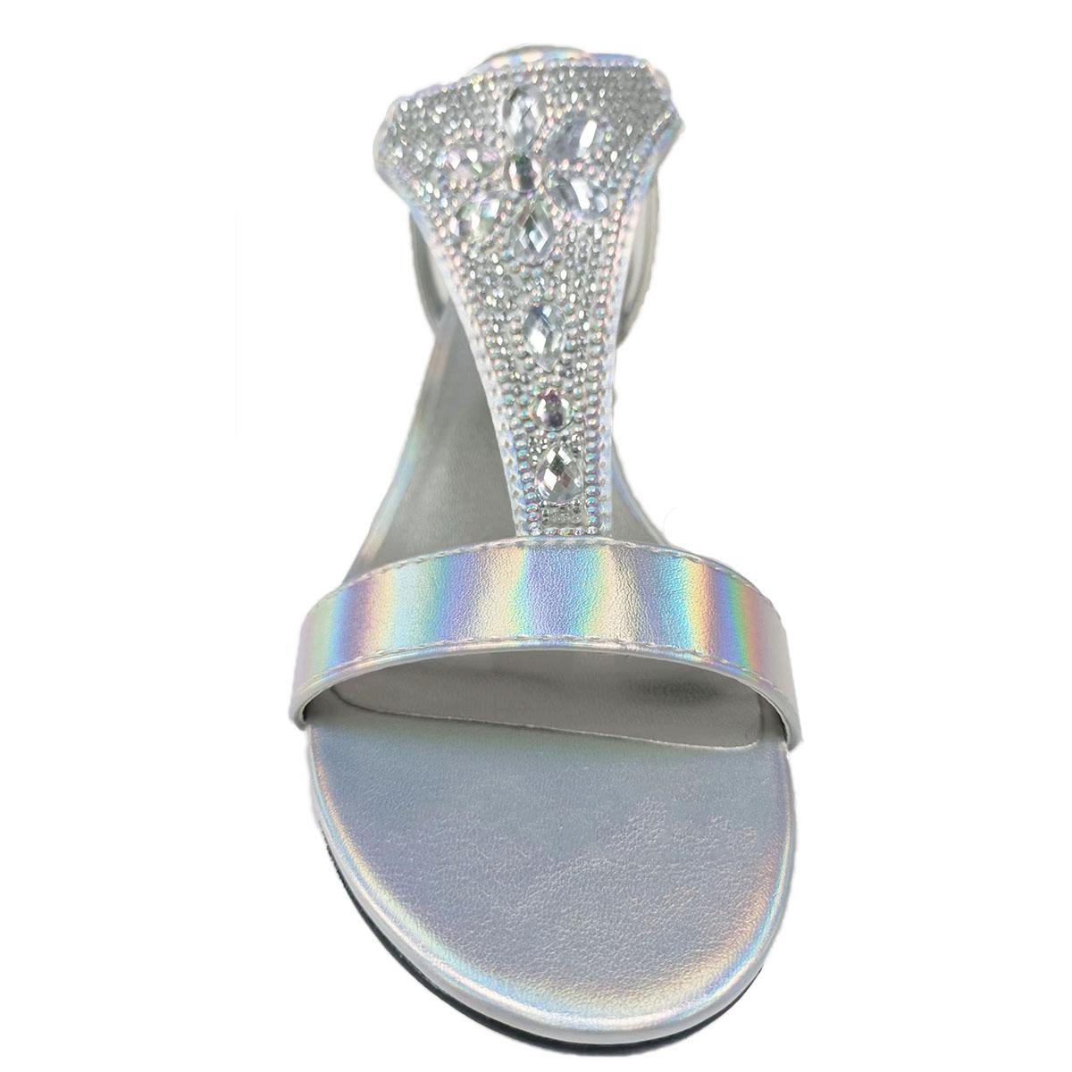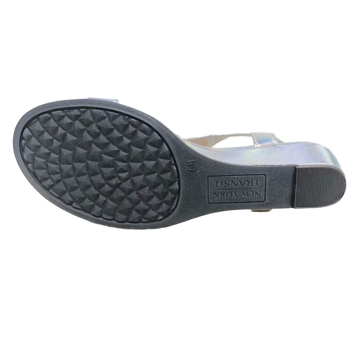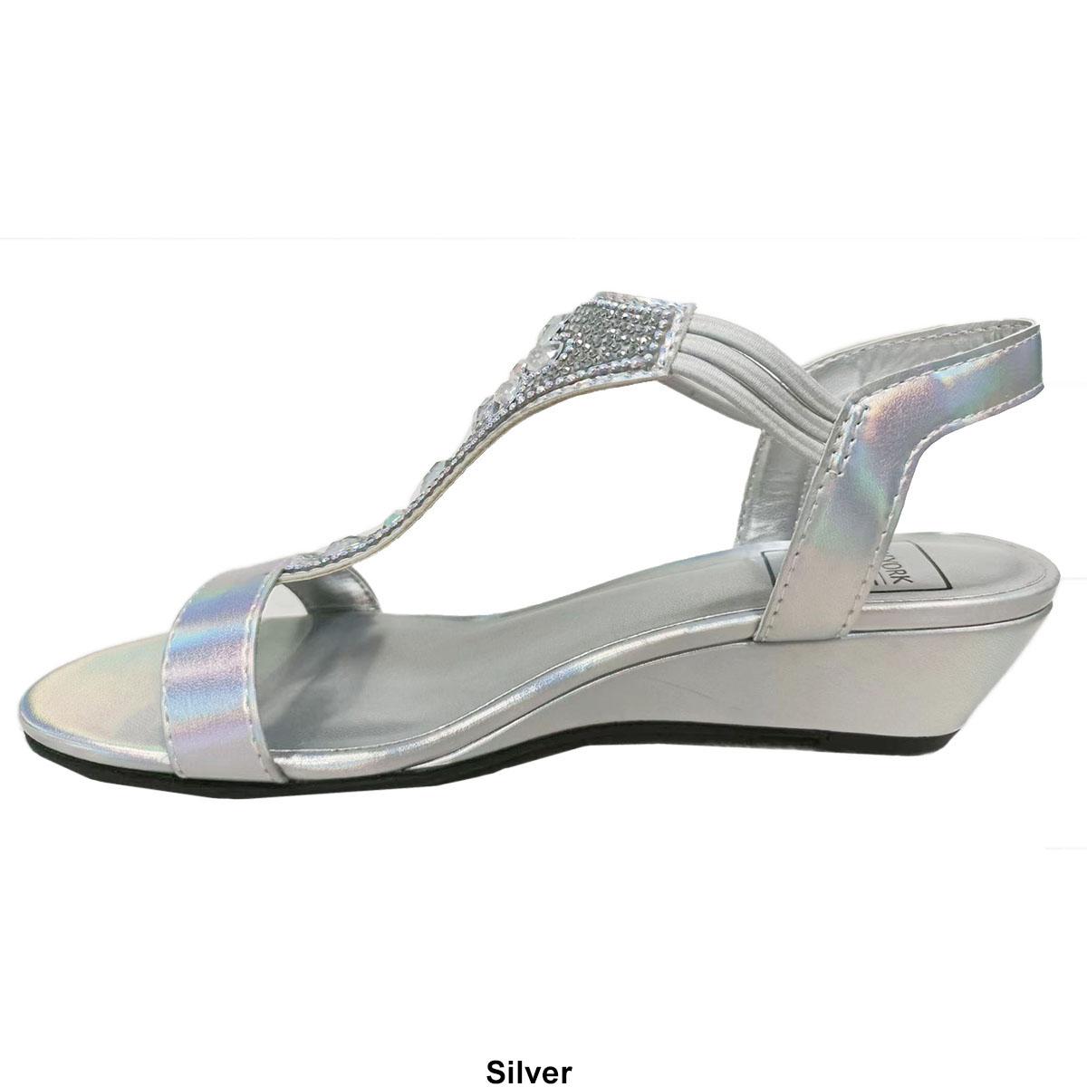Wear these Womens New York Transit tear drop dress sandals for an elegant touch to your look. Providing a wedge heel, elastic straps for a stretch fit, an ankle strap, rhinestone detailing, and a sleek finish.