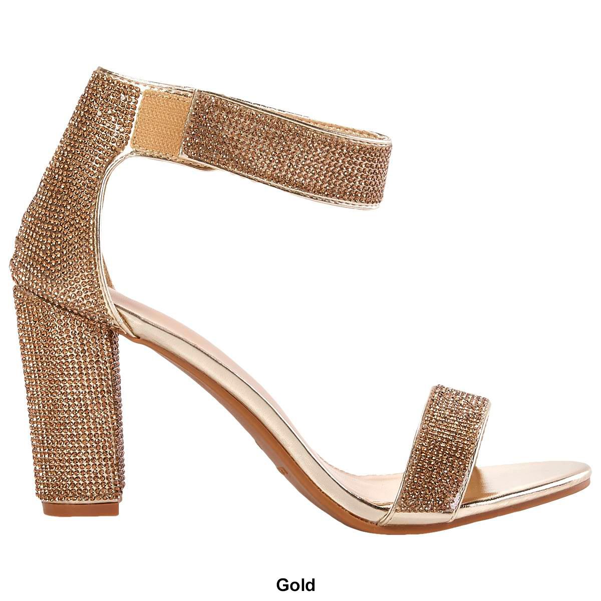 Description Heel Height: 3 1/2"Rhinestone DetailVelcro closureAnkle strap Care: Machine Wash Material: Man Made Item #: 745998 Pricing Disclosure