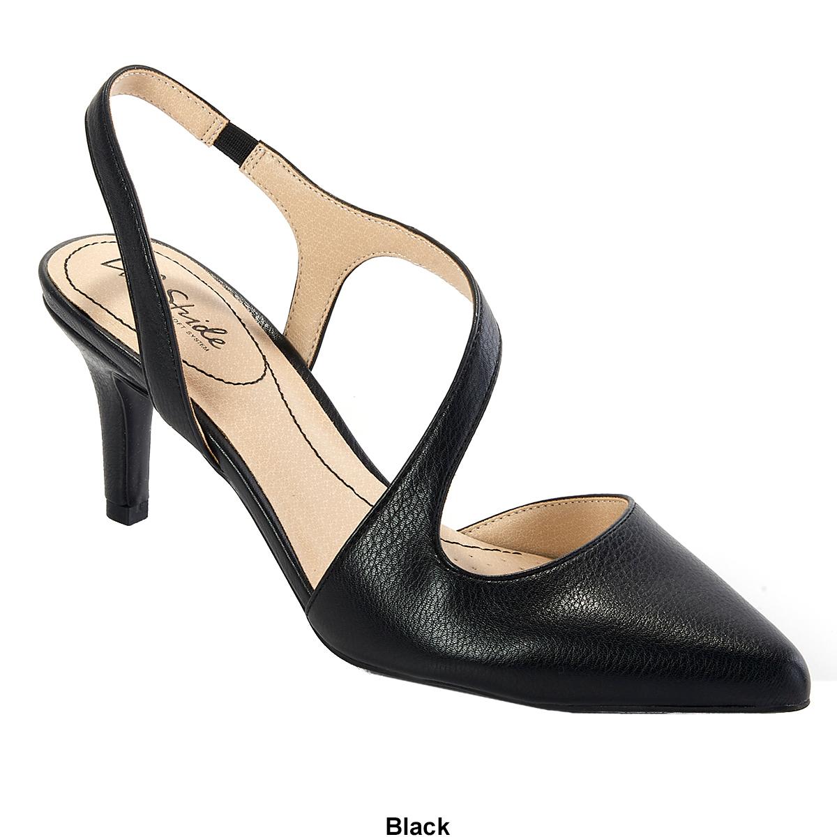 Description Feel elegant in these Womens LifeStride Santorini diagonal slingback strappy heels. Providing pointed toe slip on design, diagonal strap, and an open cutout design. A...