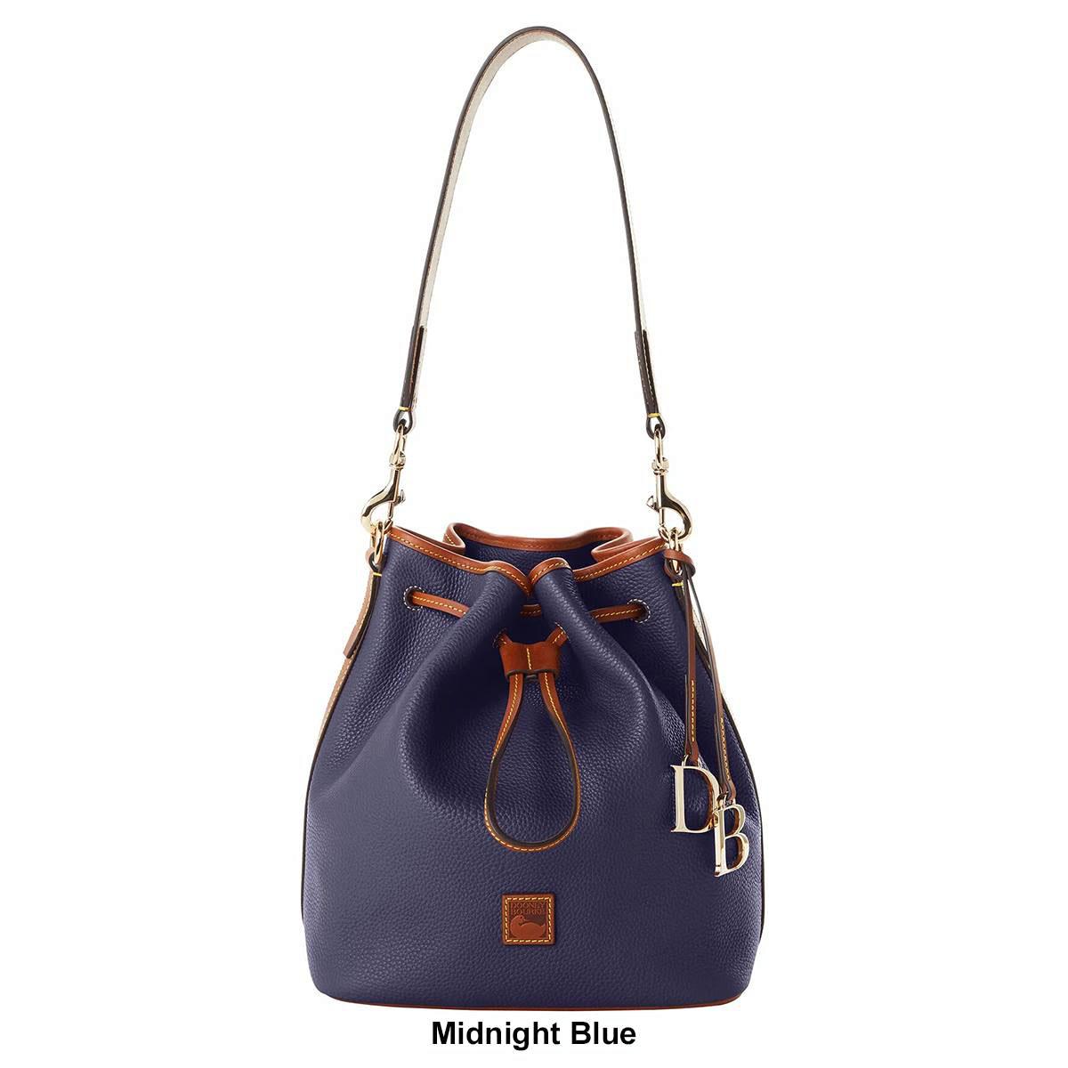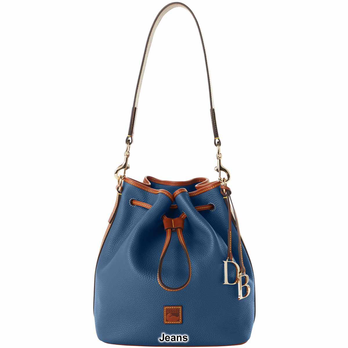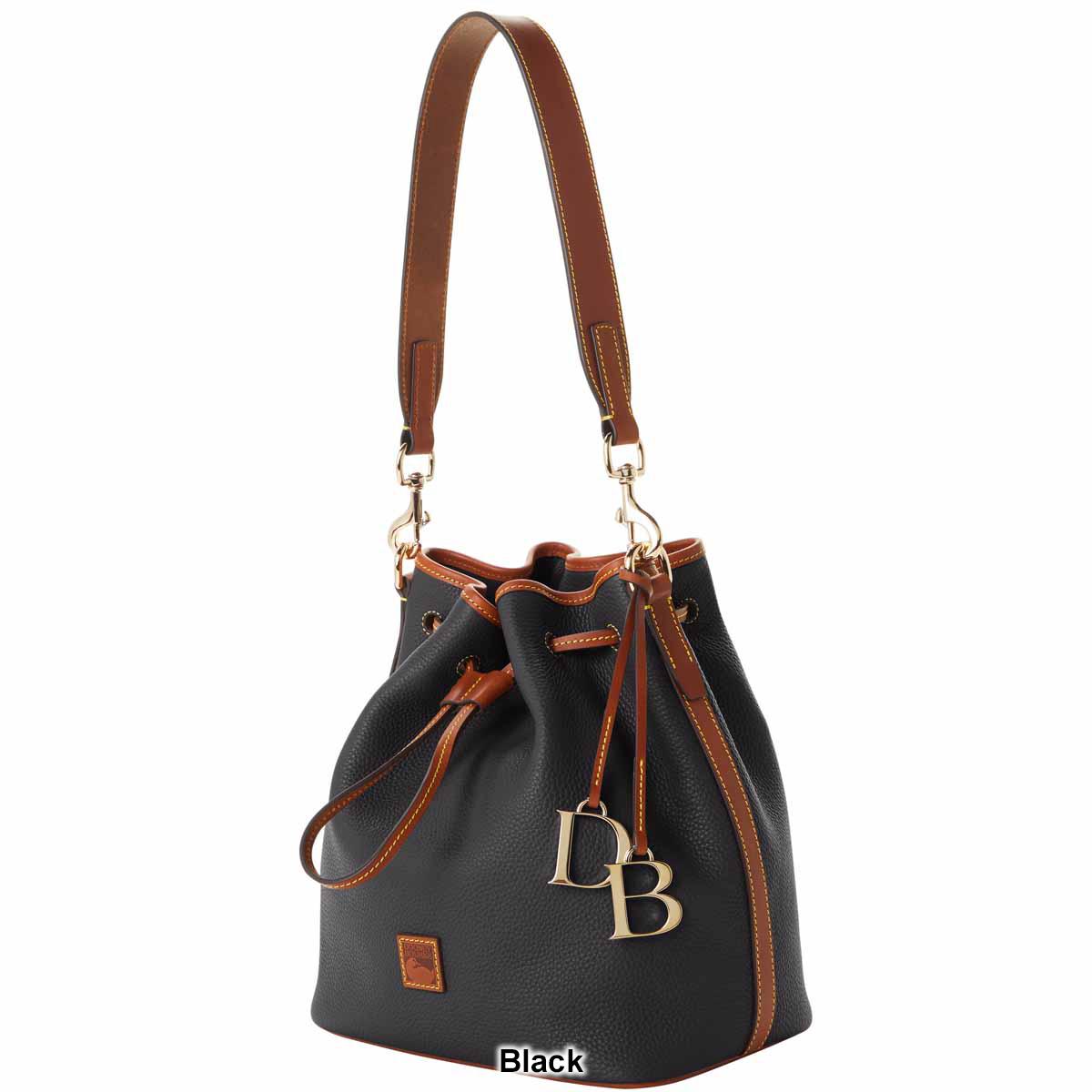 Description This iconic Dooney & Bourke pebble grain drawstring is accented with Vacchetta pebbled leather details like the adjustable drawstring closure, embossed logo, and...