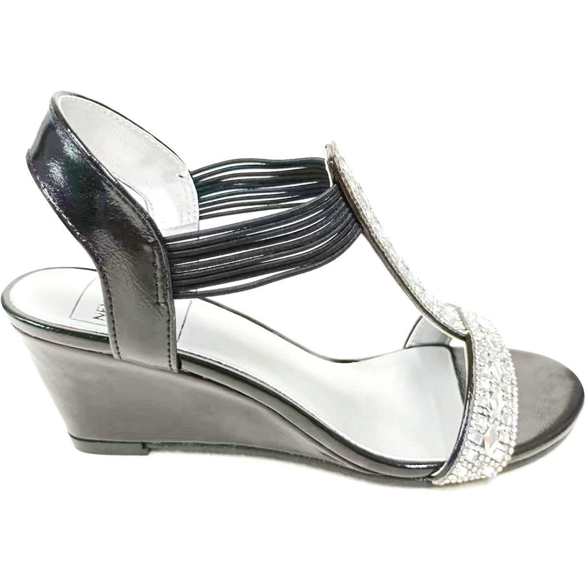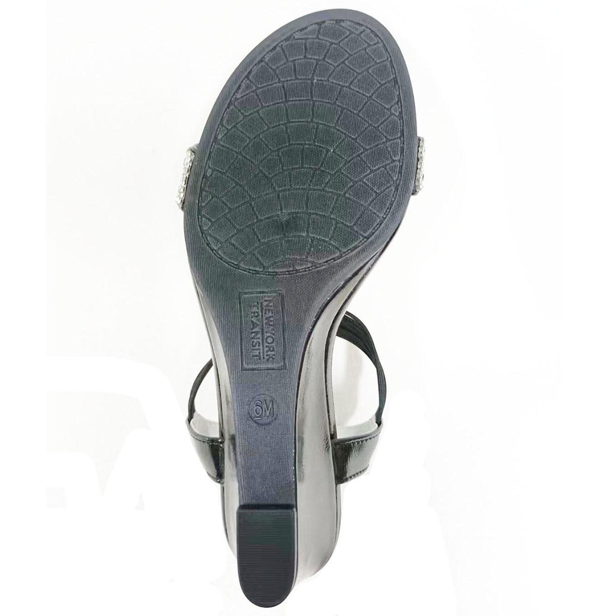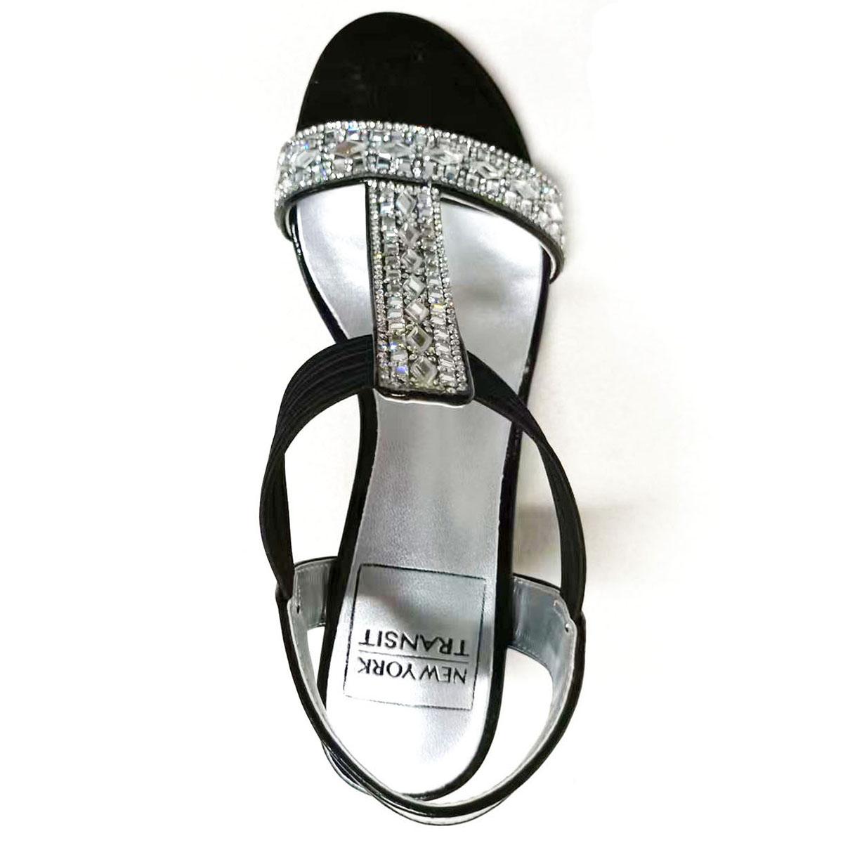 Description Have a classy look wearing the Womens New York Transit Frolic dress sandals. These sandals feature a pretty rhinestone design, an ankle strap, and slips right on with...