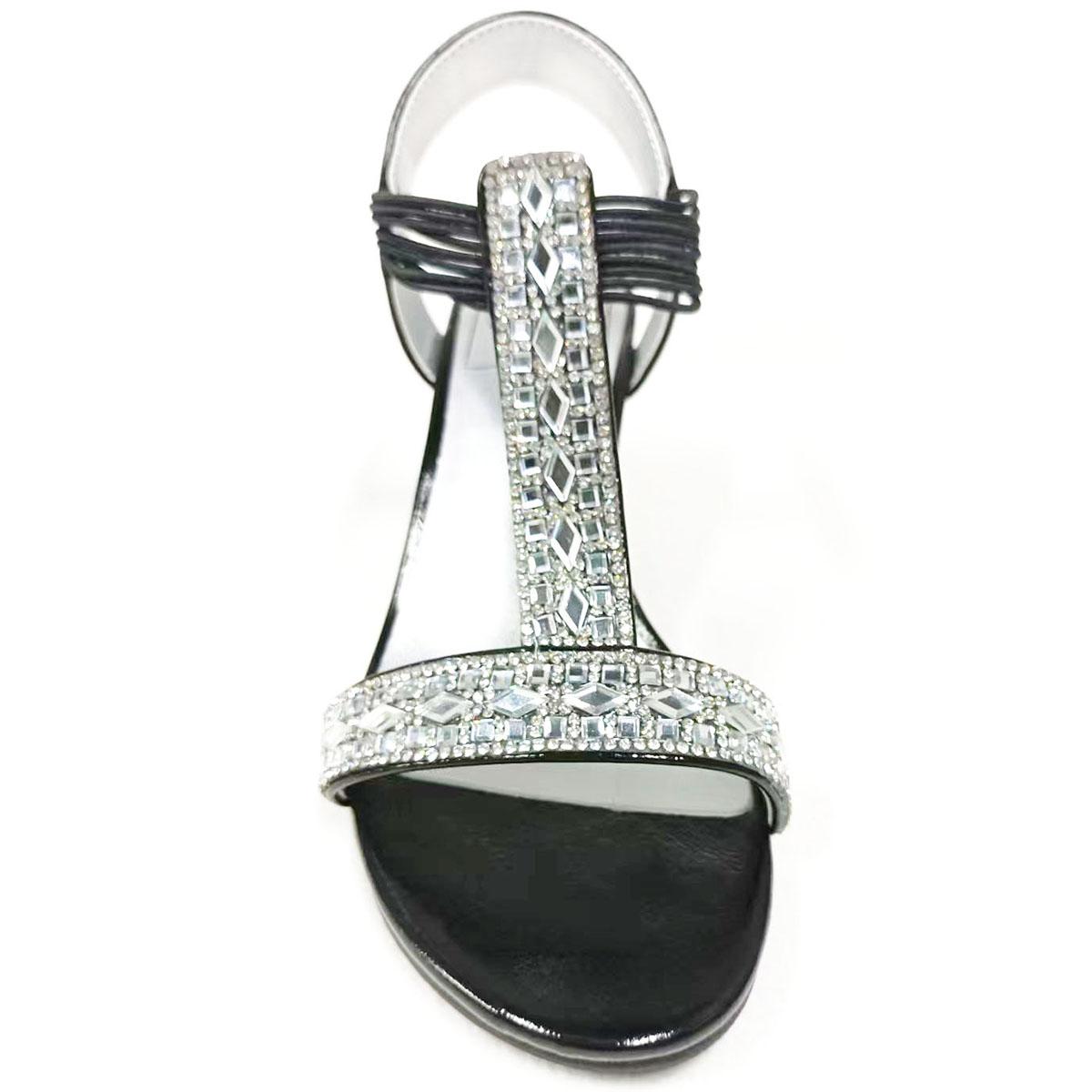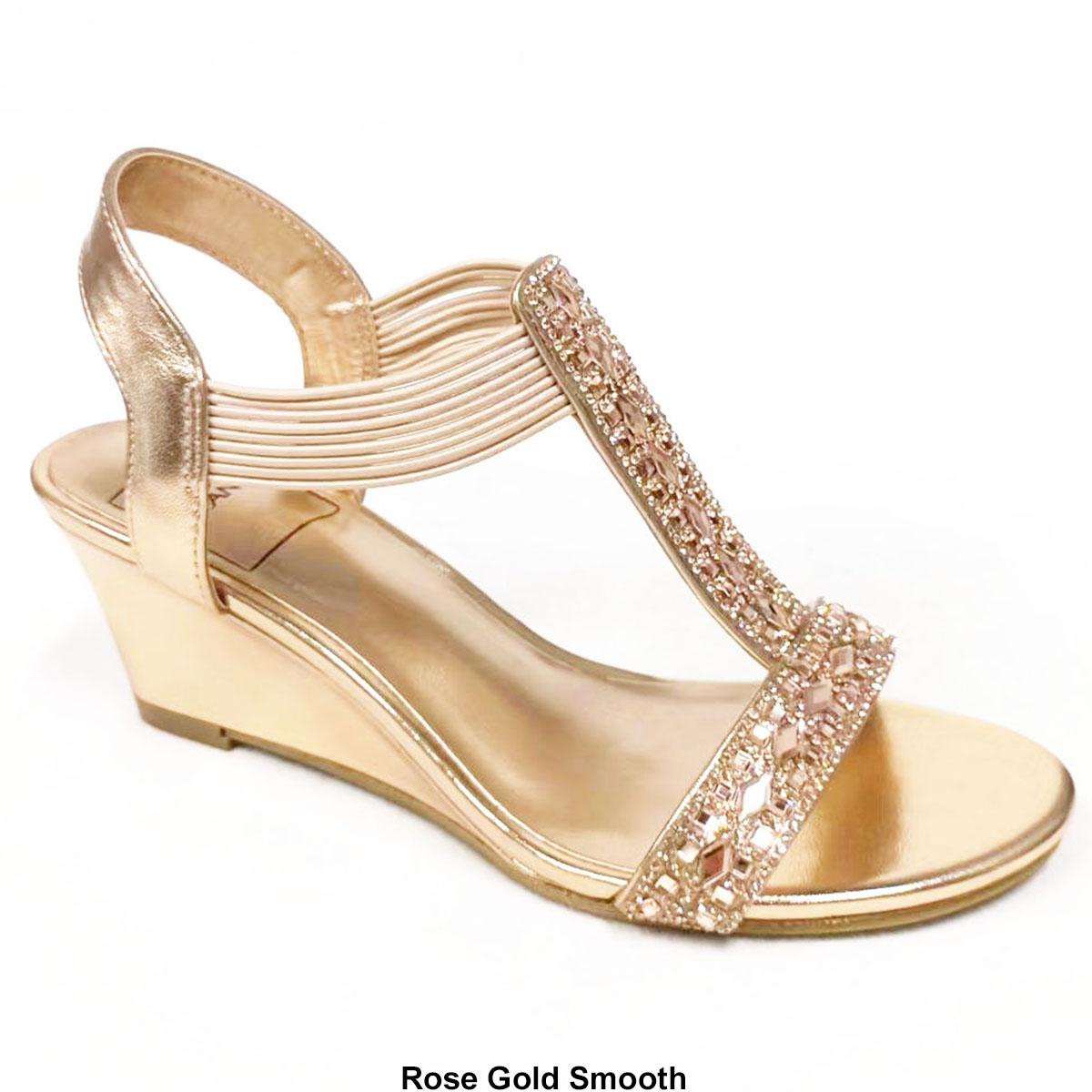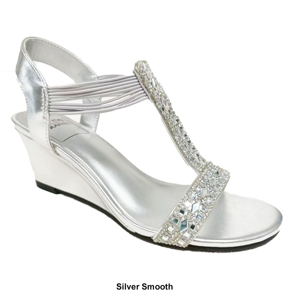 Description Have a classy look wearing the Womens New York Transit Frolic dress sandals. These sandals feature a pretty rhinestone design, an ankle strap, and slips right on with...