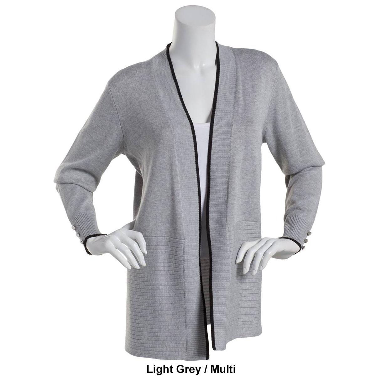 Layer this Womens 89th & Madison tipped collar and cuff cardigan with your favorite outfit.