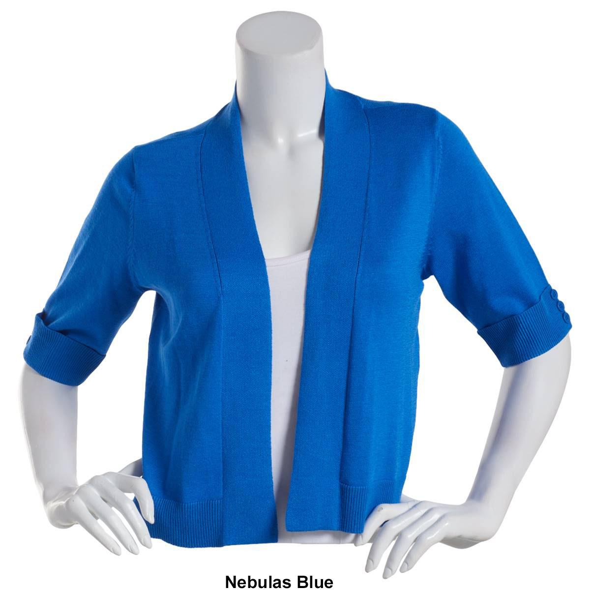 Description Layer your look with ease in the Womens 89th & Madison elbow sleeve roll tab shrug. This lightweight, open-front piece adds a refined touch to any outfit, whether...