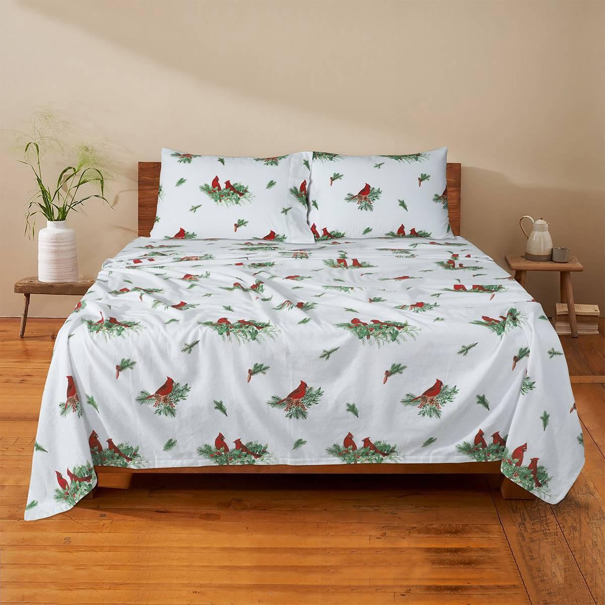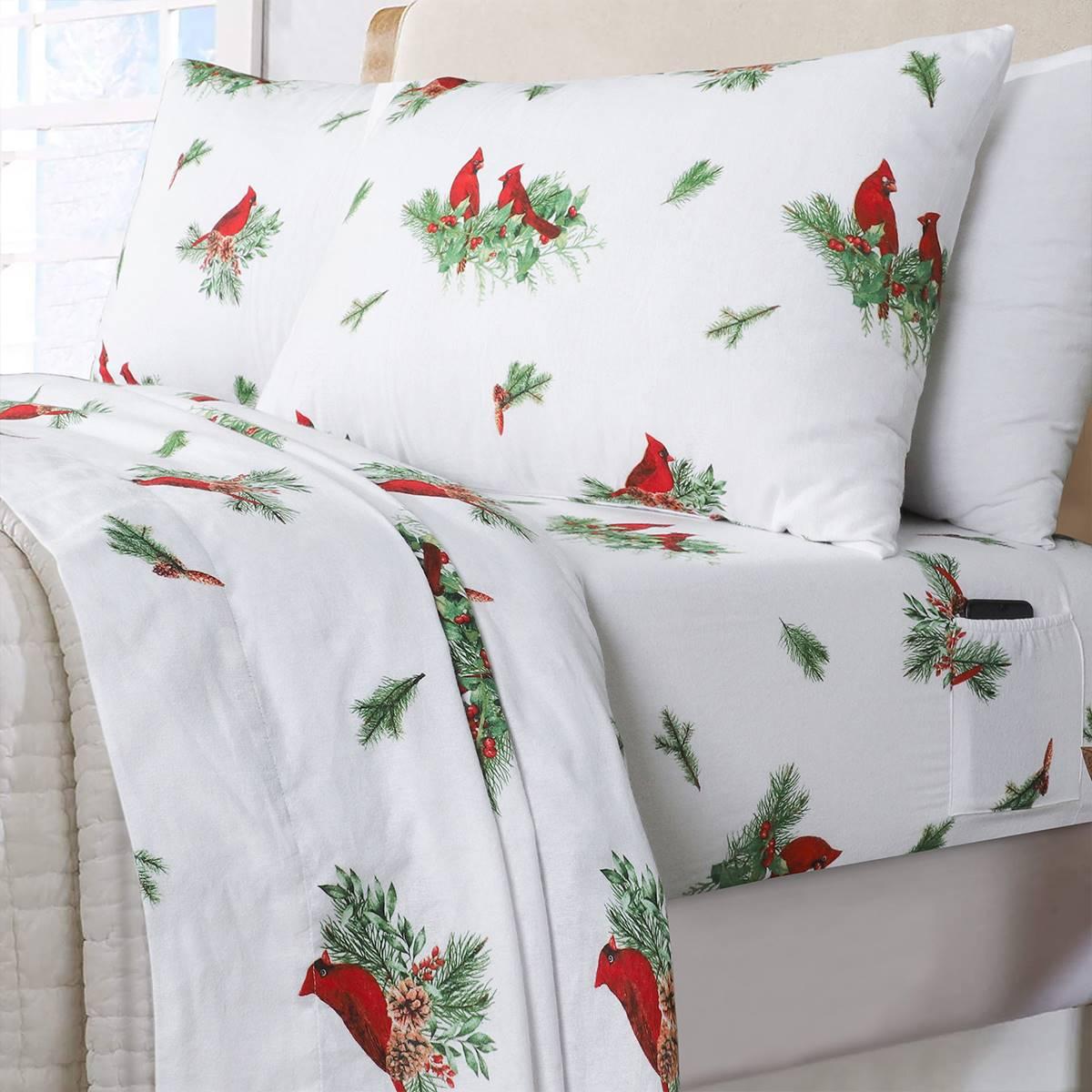 EnvioHome Durable Cotton Winter Flannel Cardinal Sheet Set