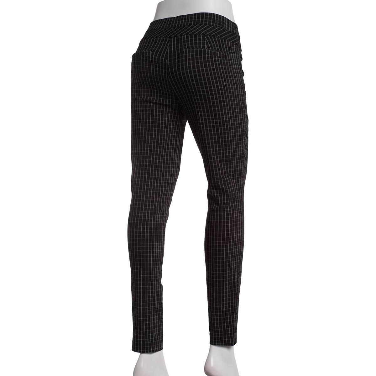 Description Freshen up your office wardrobe with these Juniors Leighton pull on millennium dress pants. This skinny pants have a checkered print and wide waist with faux pockets....