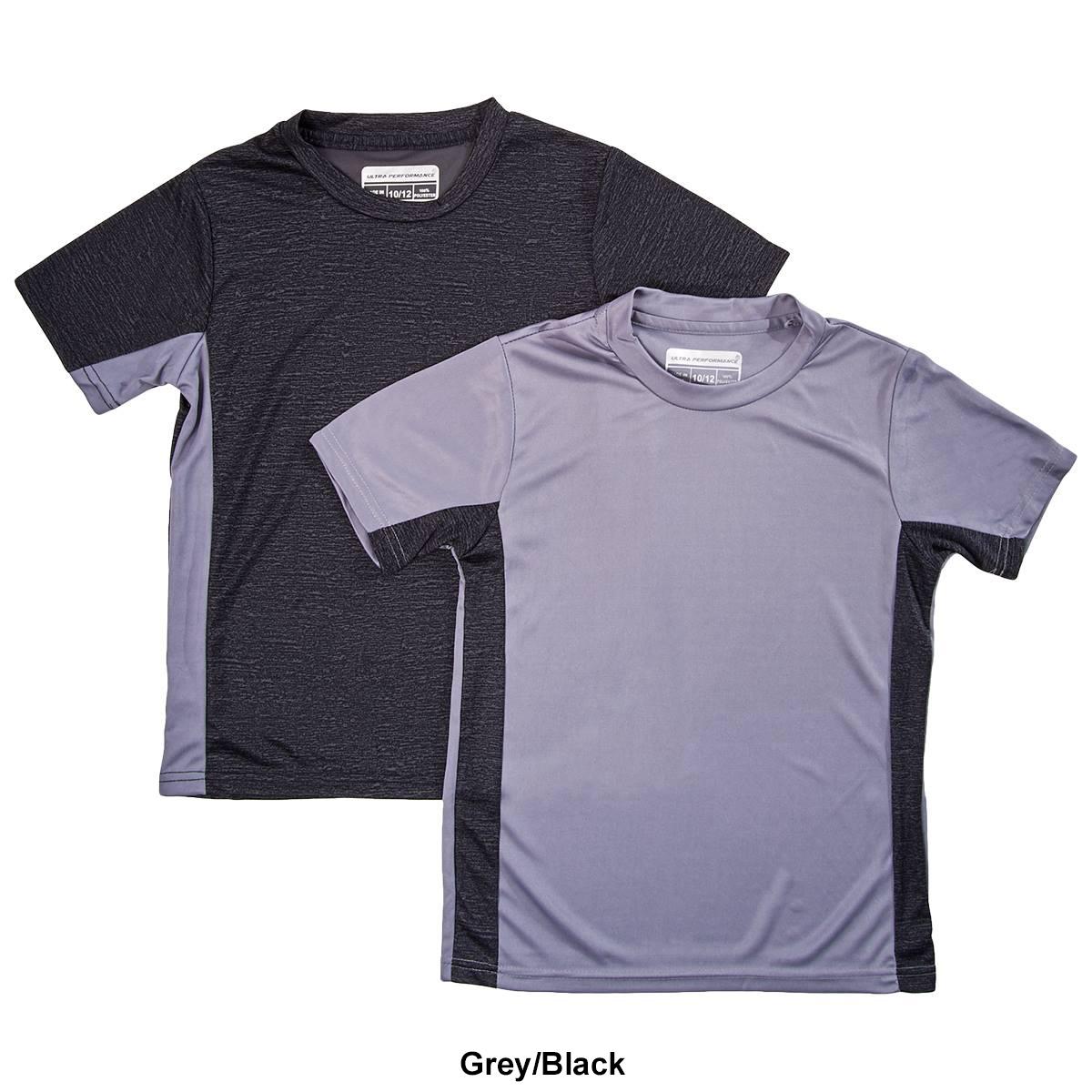 Description Give him two updated looks this season with this Boys (8-20) Ultra Performance 2-piece space dye and dry fit t-shirts. Top 1: short sleeves, color block, space dye...