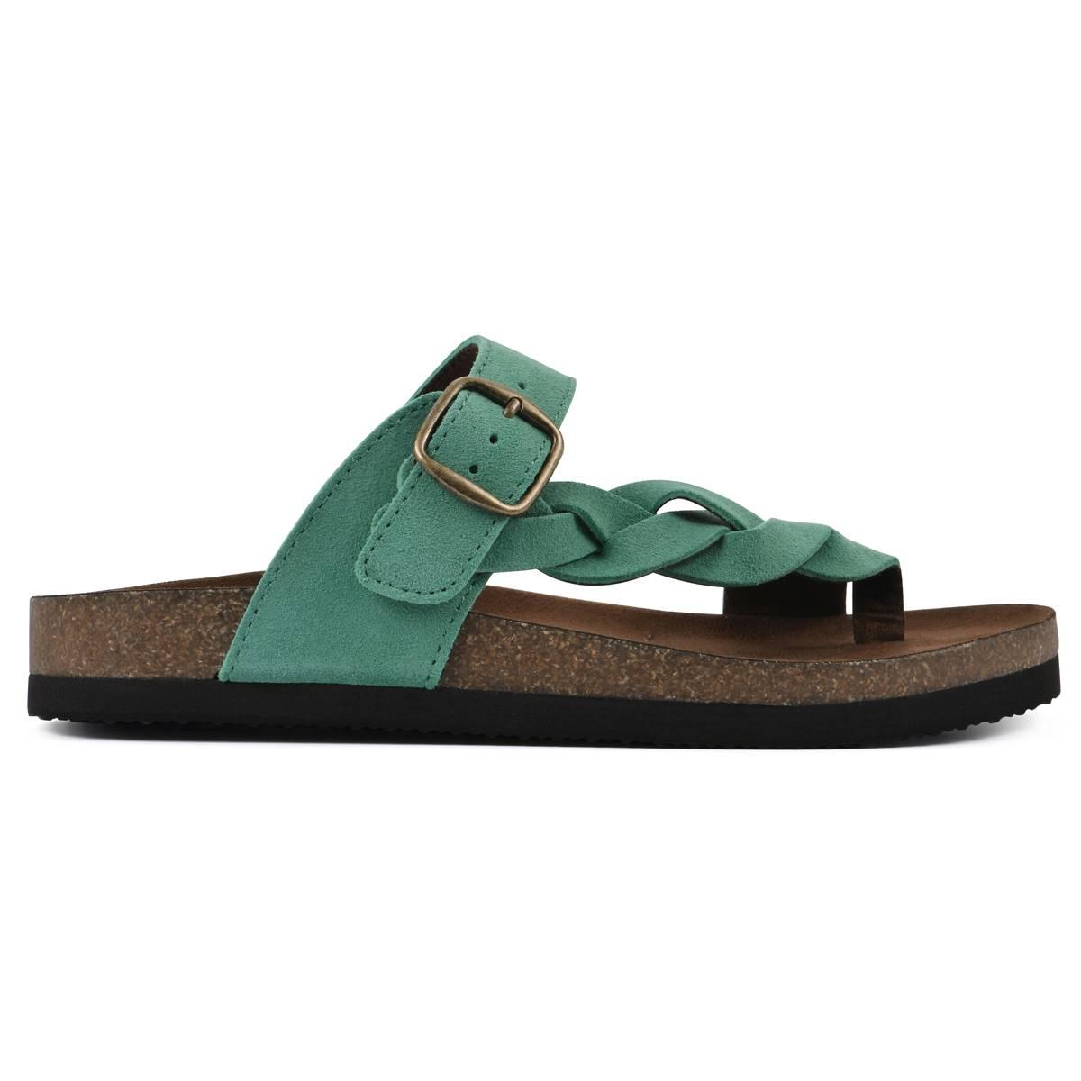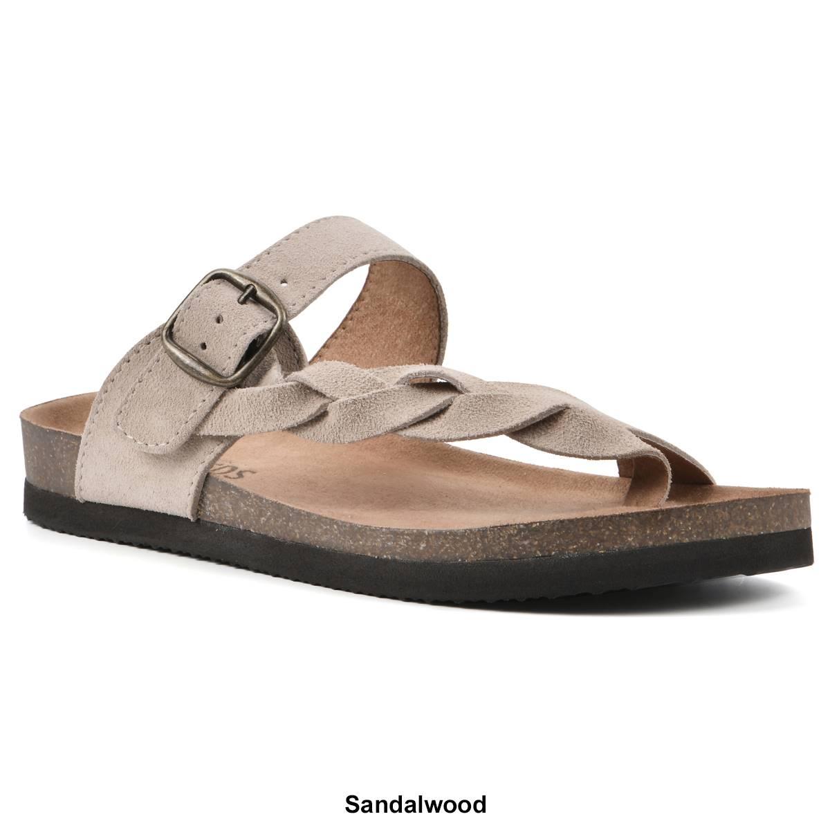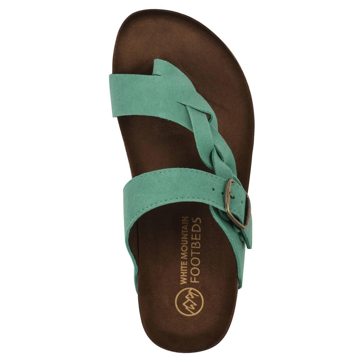 Description Get both style and comfort with these Womens White Mountain Crawford suede footbed sandals. Features a single braided strap with an adjustable buckle. The contoured...