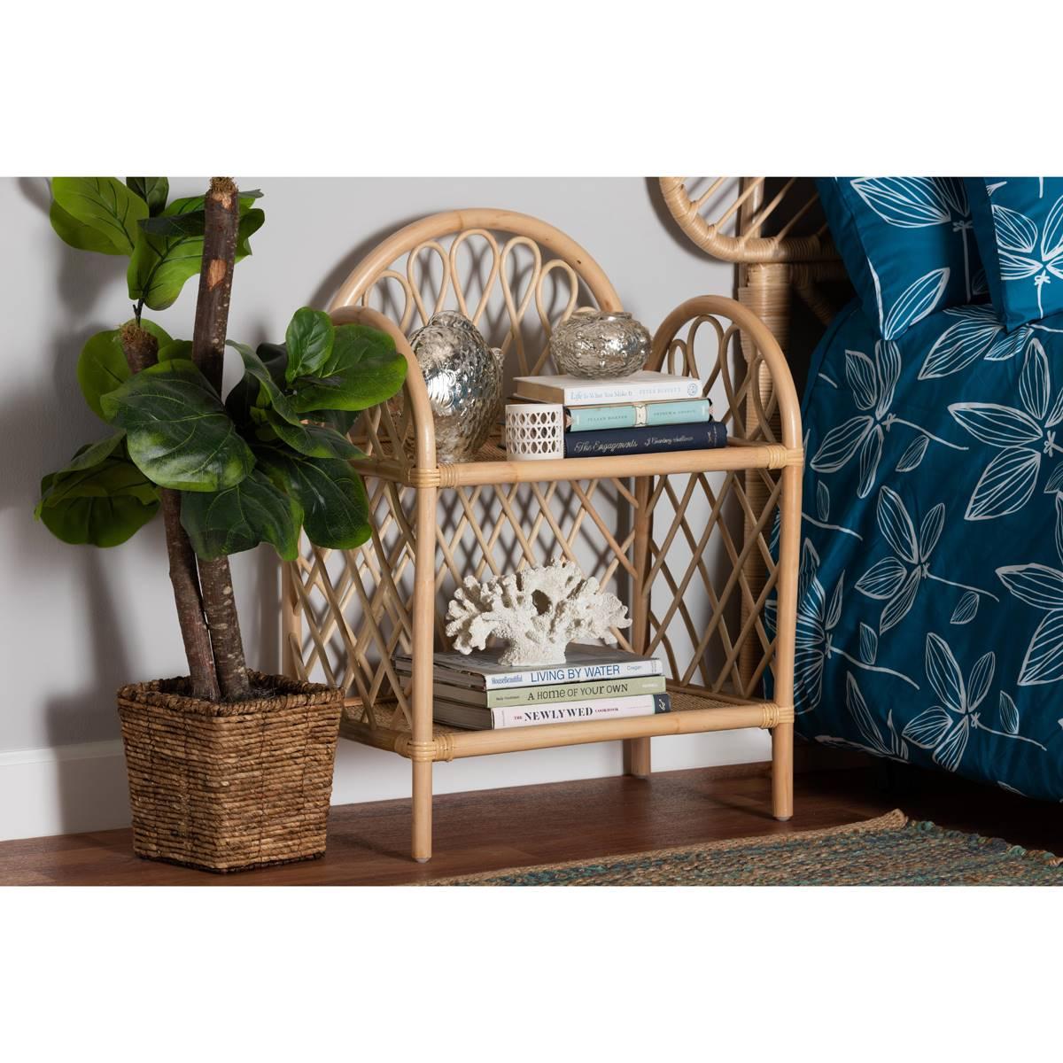 Baxton Studio Hammond Bohemian Rattan 2-Tier Display Shelf