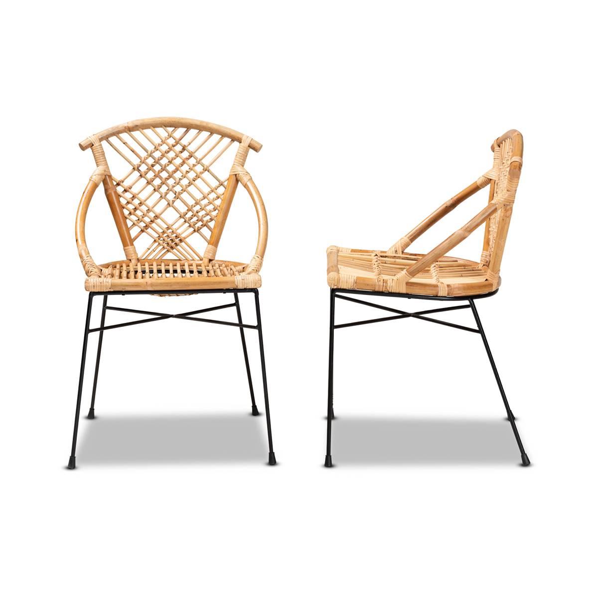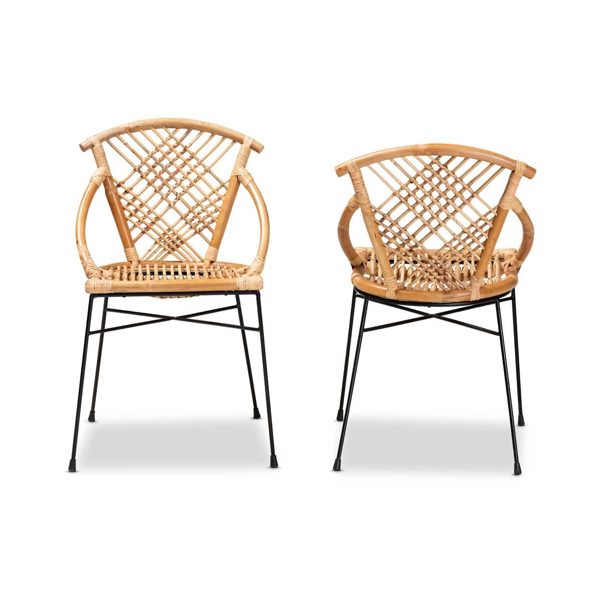 Baxton Studio Pro Bohemian Natural Rattan 2pc. Dining Chair Set