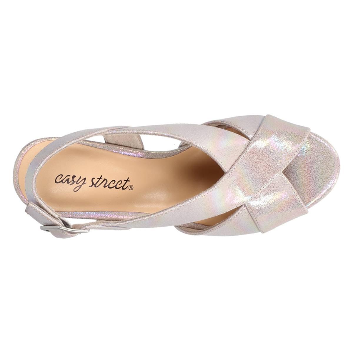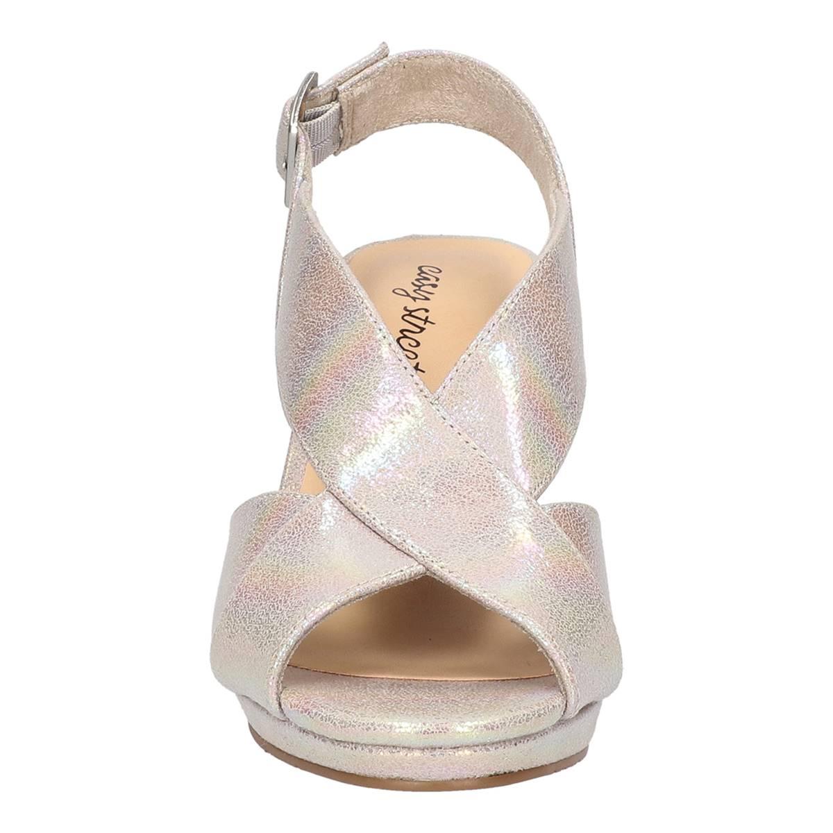 Sophisticated and stylish, these Womens Easy Street Christy iridescent peep toe heels are the perfect way to elevate your attire. The contemporary dress heel and platform will transform your look day, night, or evening. The adjustable slingback offers a more custom fit.