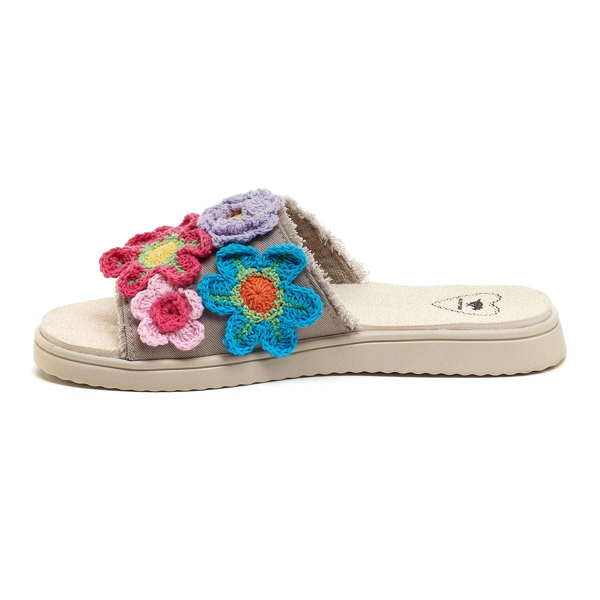 Description Heel Height: LowFloral detailCrochet designEVA footbed for comfort Care: Spot Clean Material: Man Made Item #: 748815 Pricing Disclosure