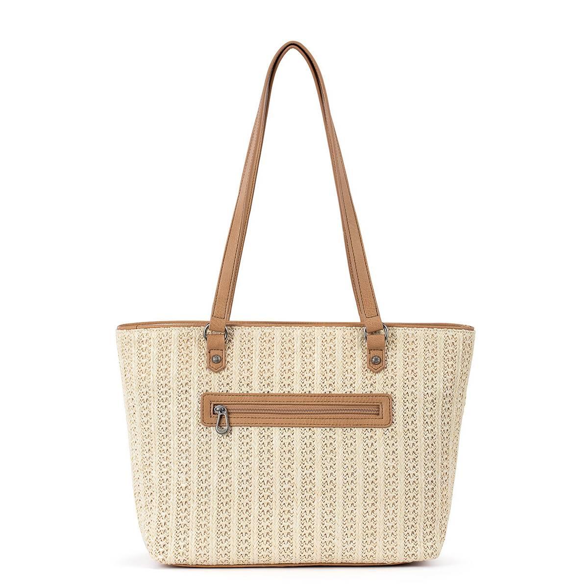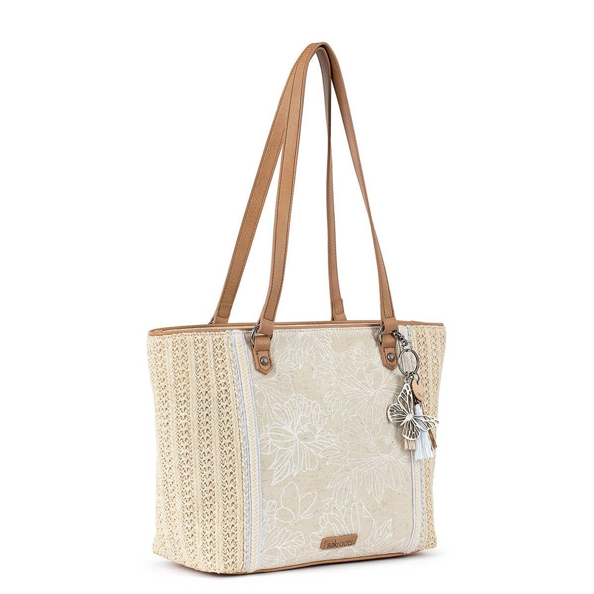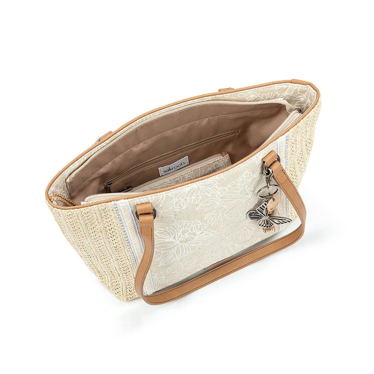 Description Heading to the beach or just bumming around town? Reach for this Sakrotts meadow tote, made from an artful mix of soft straw and printed canvas, both sustainably made...