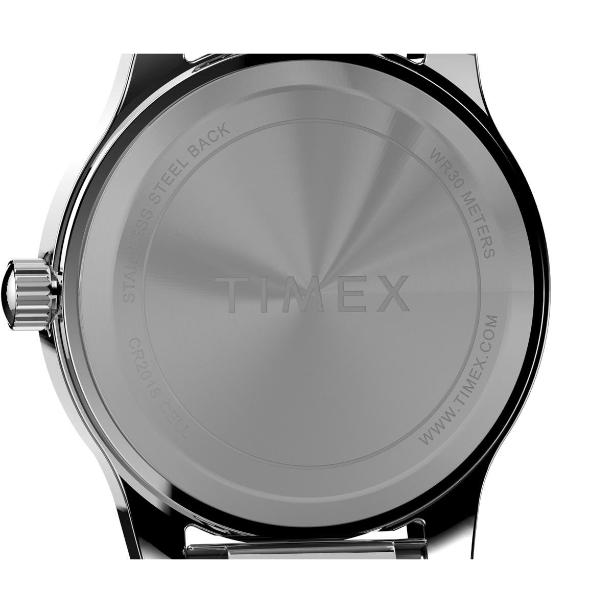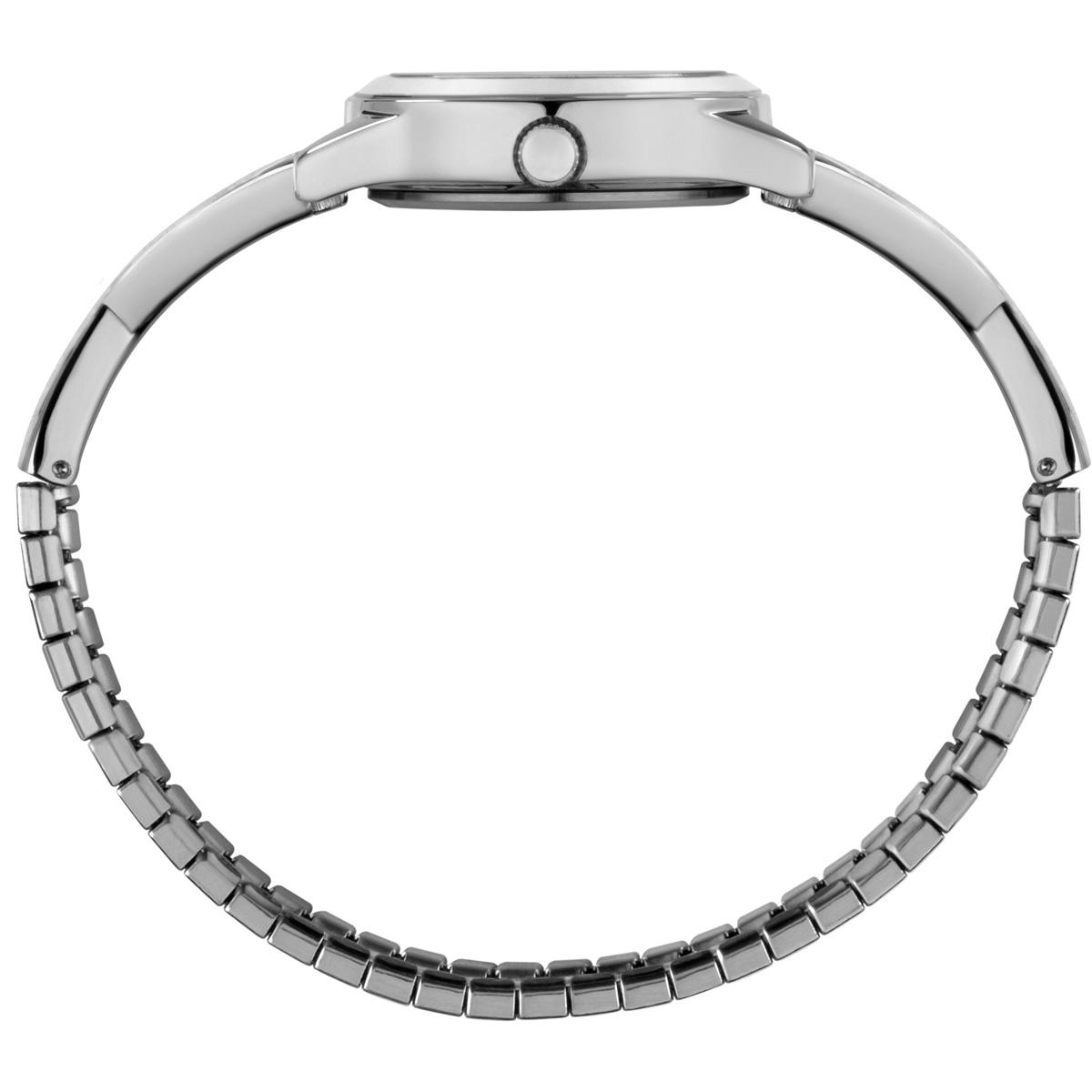 Stunning, jewelry-inspired womens Timex® design meets comfort and eases with our semi-bangle collection. We´ve paired the look of a stylish timepiece with its 25mm case and crystal-accented, textured dial with the convenience of a semi-bangle expansion band, creating the perfect accessory for any look.