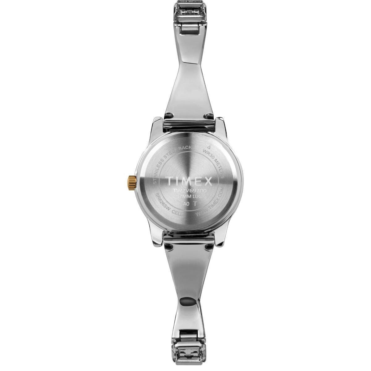 Stunning, jewelry-inspired womens Timex® design meets comfort and eases with our semi-bangle collection. We´ve paired the look of a stylish timepiece with its 25mm case and crystal-accented, textured dial with the convenience of a semi-bangle expansion band, creating the perfect accessory for any look.