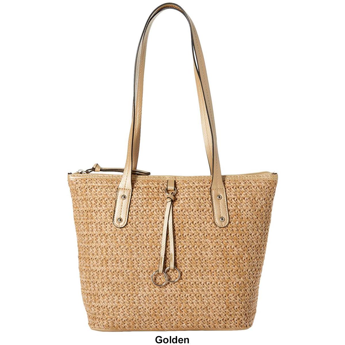 Description This airy Bueno straw tote is perfect for a simple look during the warm summer days. Zip closureDouble shoulder strapMetal detailing Handle Drop: 10 " Care: Spot...