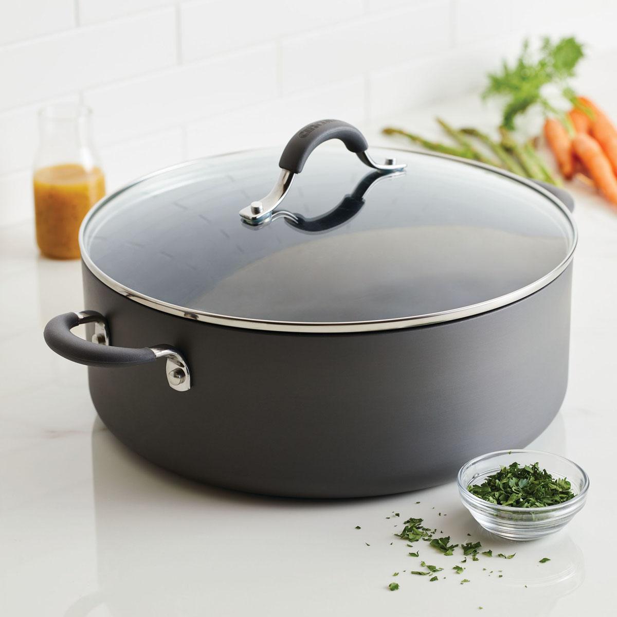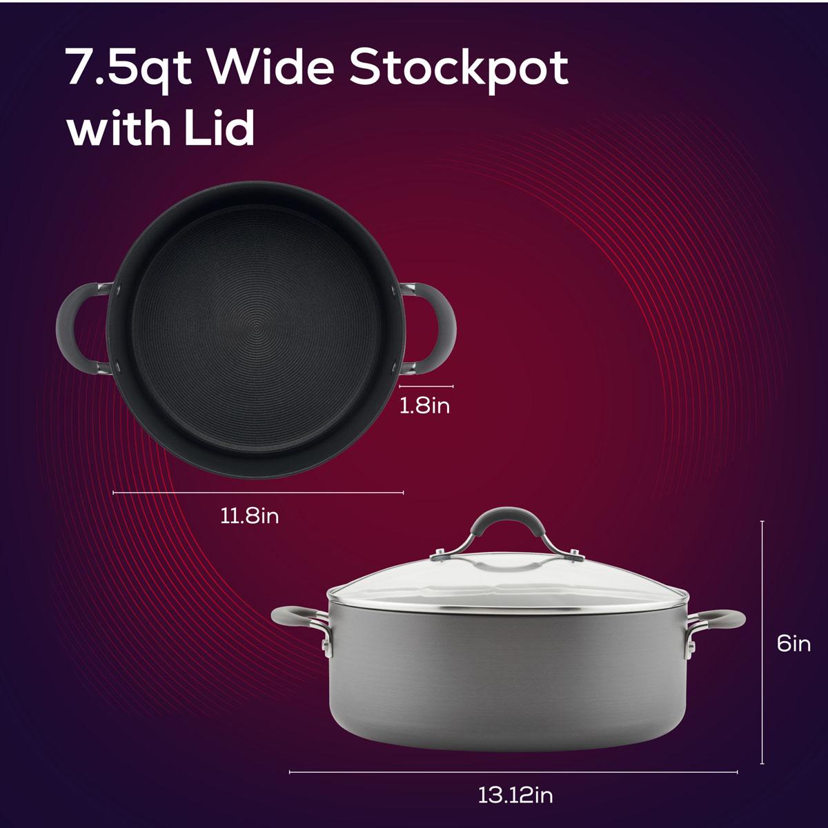 Description Make family meals with ease and cook smarter (not harder) with the Circulon® Radiance 7.5-quart hard-anodized non-stick wide stockpot. A shatter-resistant, tempered...