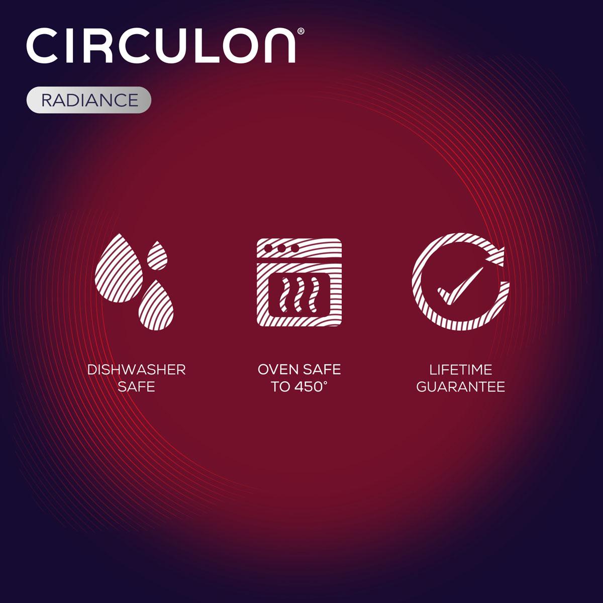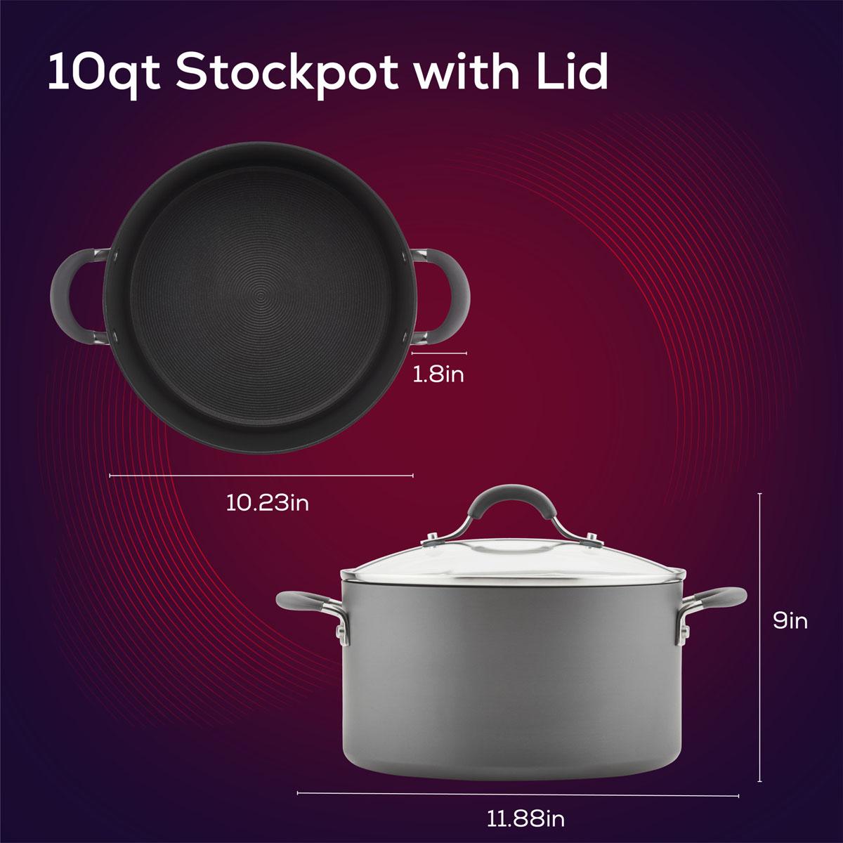 Description Make family meals with ease and cook smarter (not harder) with the Circulon® Radiance 10-quart hard-anodized nonstick wide stockpot. A shatter-resistant, tempered...