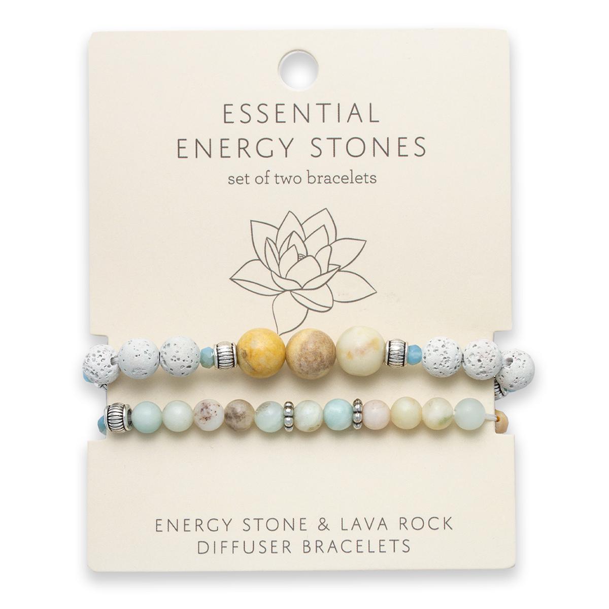 Show off your style with the Amazonite ivory lava bead 2-piece stretch bracelet set with an energy stone story card.