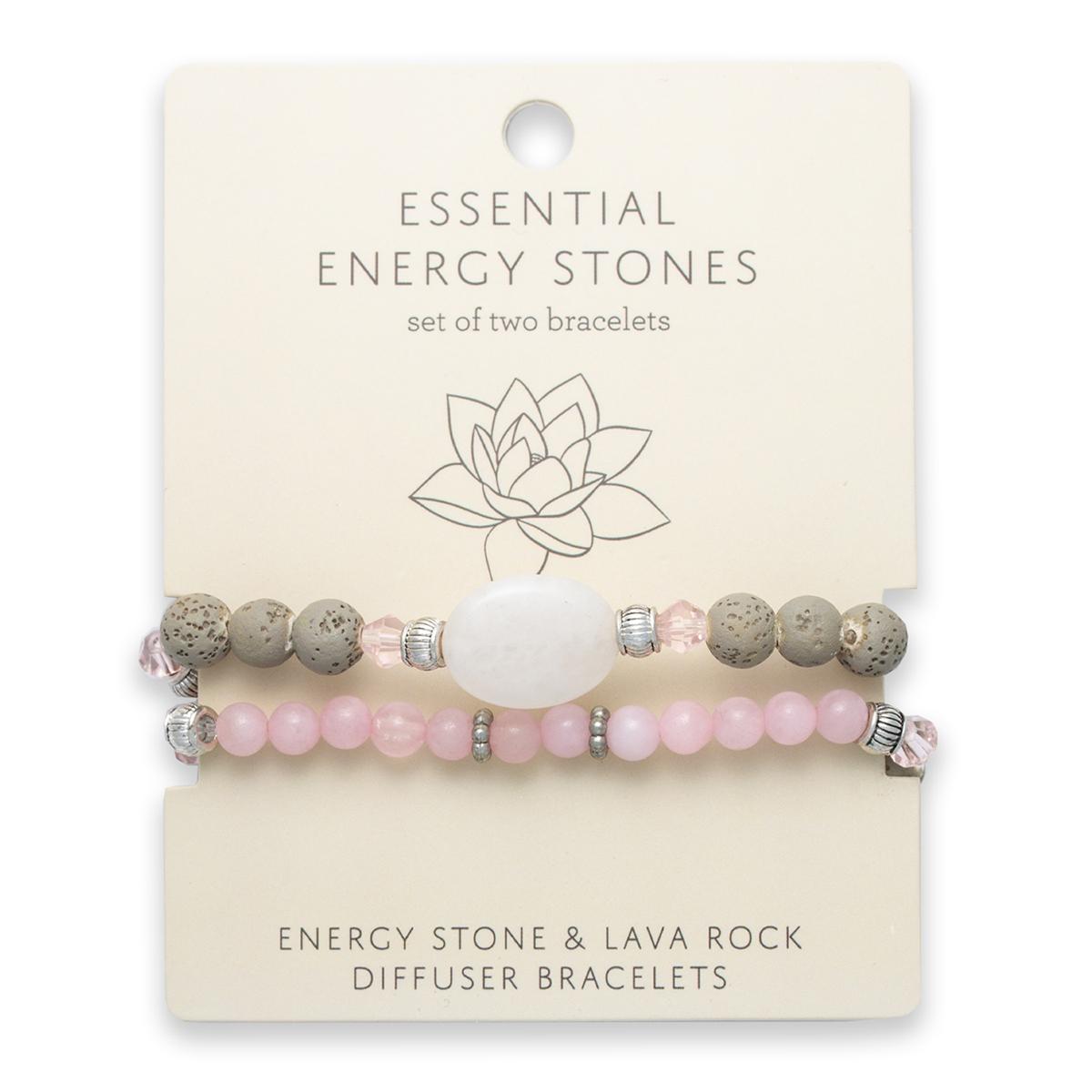 The Rose quartz and ivory lava 2-piece stretch bracelet set with an energy stone story card is a fashion essential.