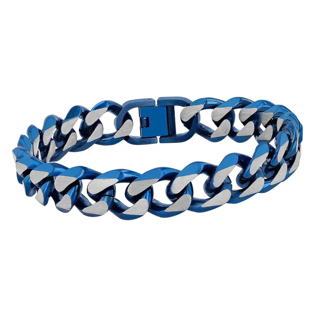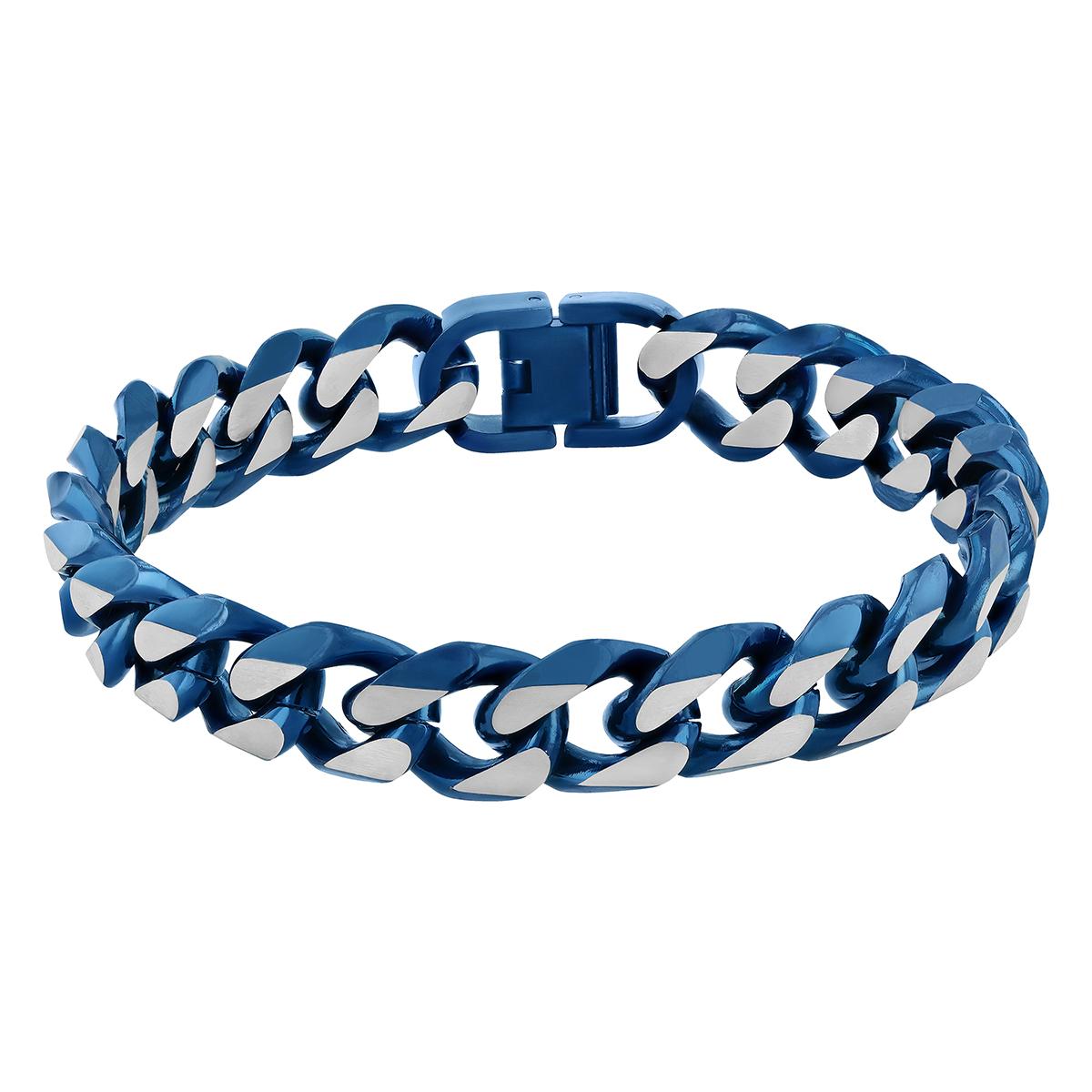 Get him something new and different in this mens Gentlemen´s Classicss™ stainless steel curb link bracelet in silver and blue tones. This 8.5-inch fashion bracelet features plated beveled curb links and secures with a foldover clasp. A popular two-tone bracelet, this piece pairs well with most outfits. Stainless steel is a favored alternative metal for durable jewelry, ideal for everyday wear.