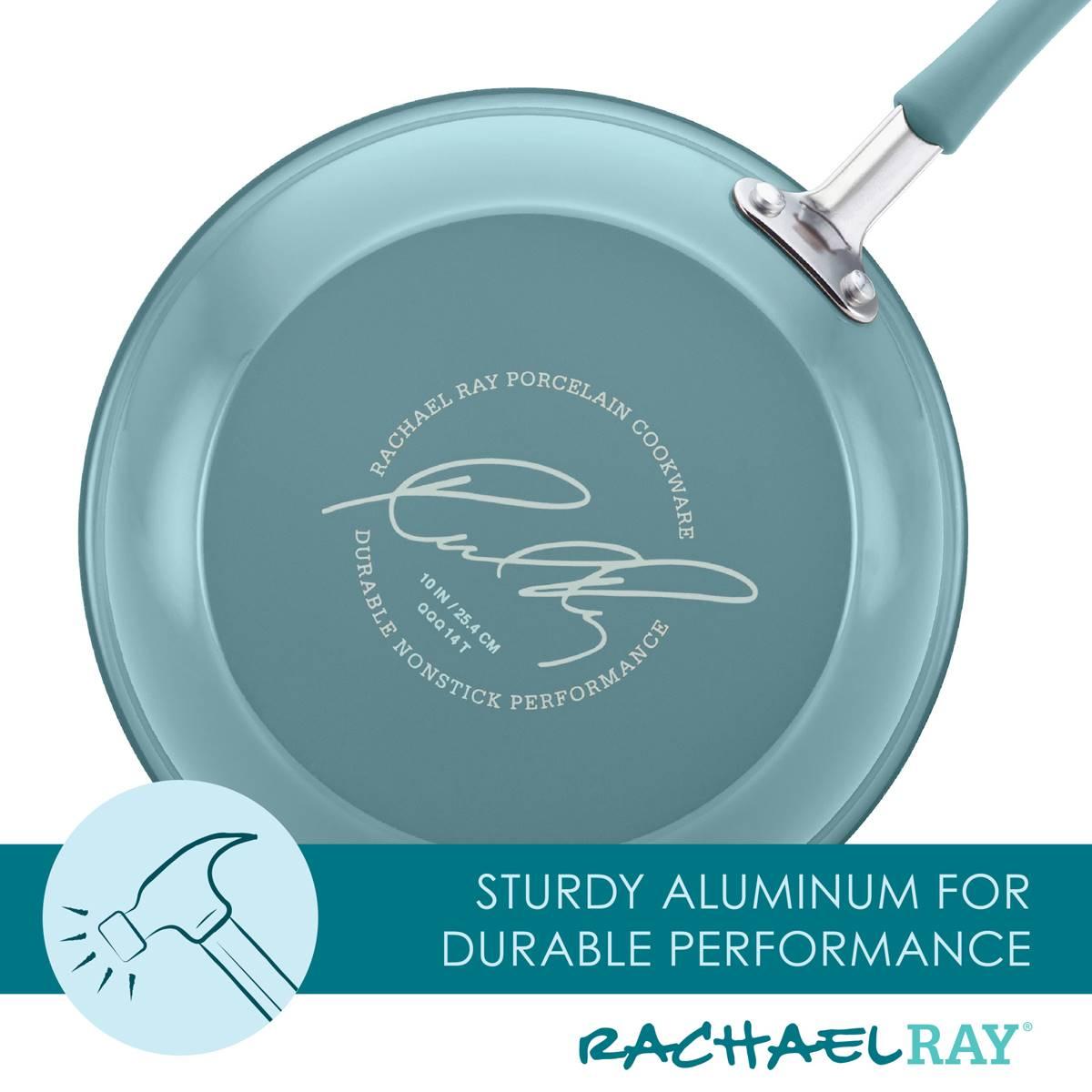 Get high performance and durability in the kitchen with this Rachael Ray 14-piece Cucina nonstick cookware and measuring cup set. Crafted with sturdy hard enamel porcelain exteriors and durable aluminum construction that promotes fast, even heating. Rubberized stainless steel handles on the cooking set are dual riveted for added strength, and shatter-resistant glass lids seal in heat and flavor.