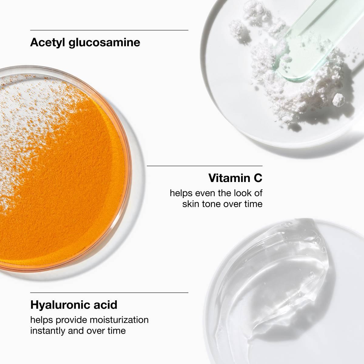 - Helps boost radiance, smooth the look and feel of skin, and visibly even skin tone over time.