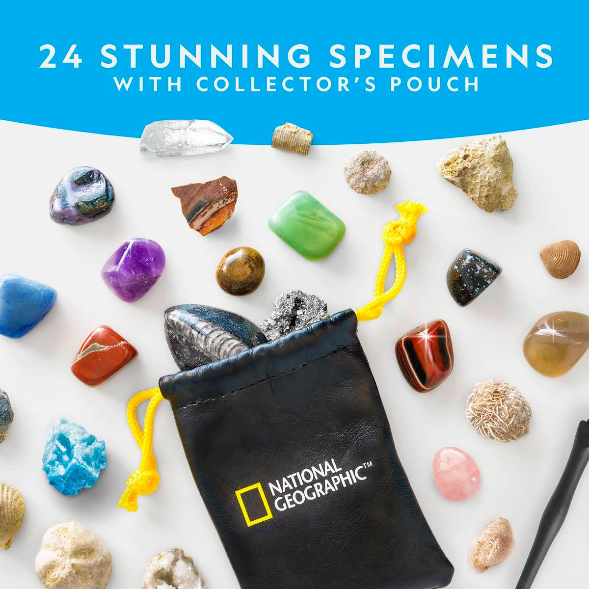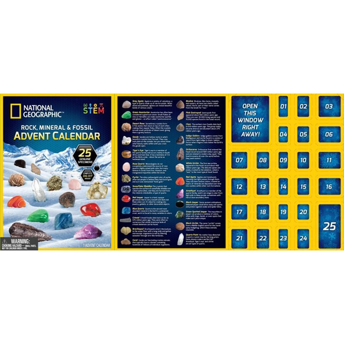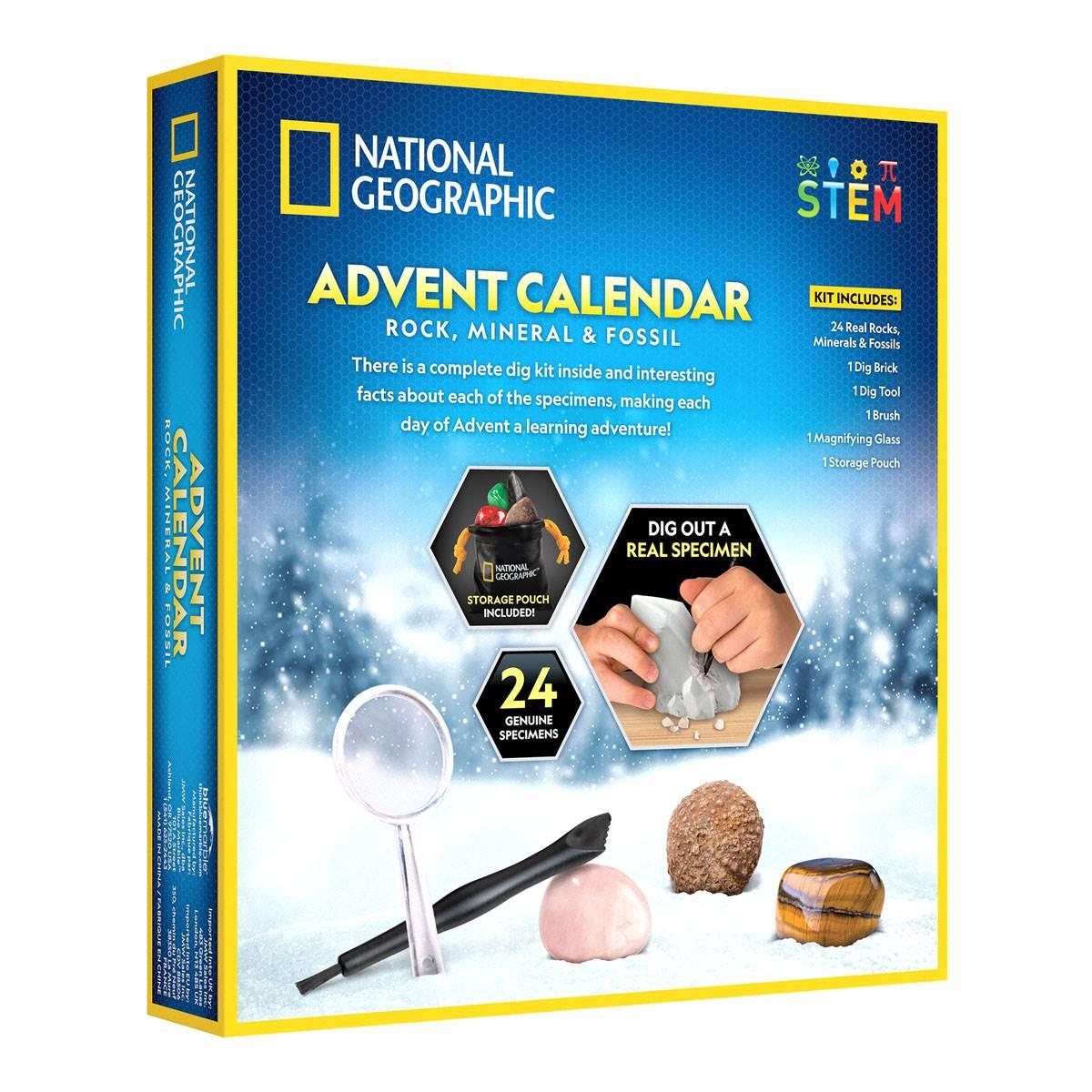 Kids love rocks, gems, and fossils, and this exciting Christmas countdown calendar will give them a new specimen to add to their collection each day as the holiday approaches. This National Geographic™ advent calendar also includes a pouch for storing their treasures, as well as a magnifying glass and identification sheet.Rock and mineral collecting is a fascinating and popular hobby kids love, and the 2022 National Geographic Rock, Mineral & Fossil Advent Calendar is a great introduction for boys and girls with an interest in geology. They´ll love collecting and learning about these premium rock, fossil and mineral specimens that were formed over millions of years!