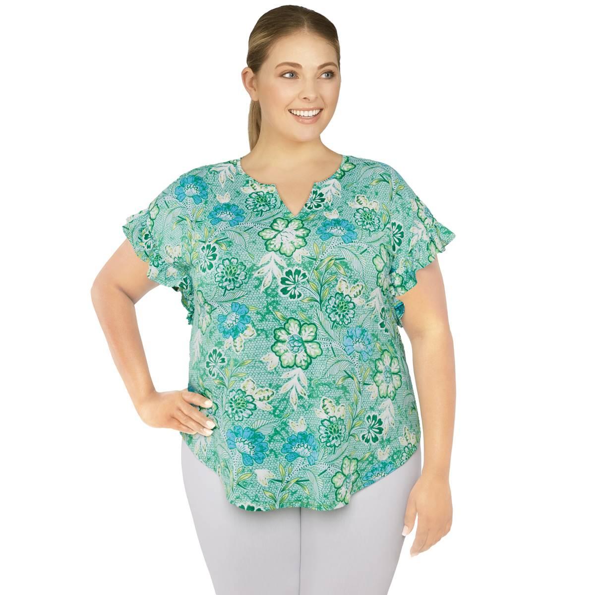 Who doesn´t love puffs! Check out this Plus Size Ruby Rd. Must Haves II collection floral puff print top with a fun and feminine short sleeve and split neckline. It is perfect to pair with your favorite pant!
