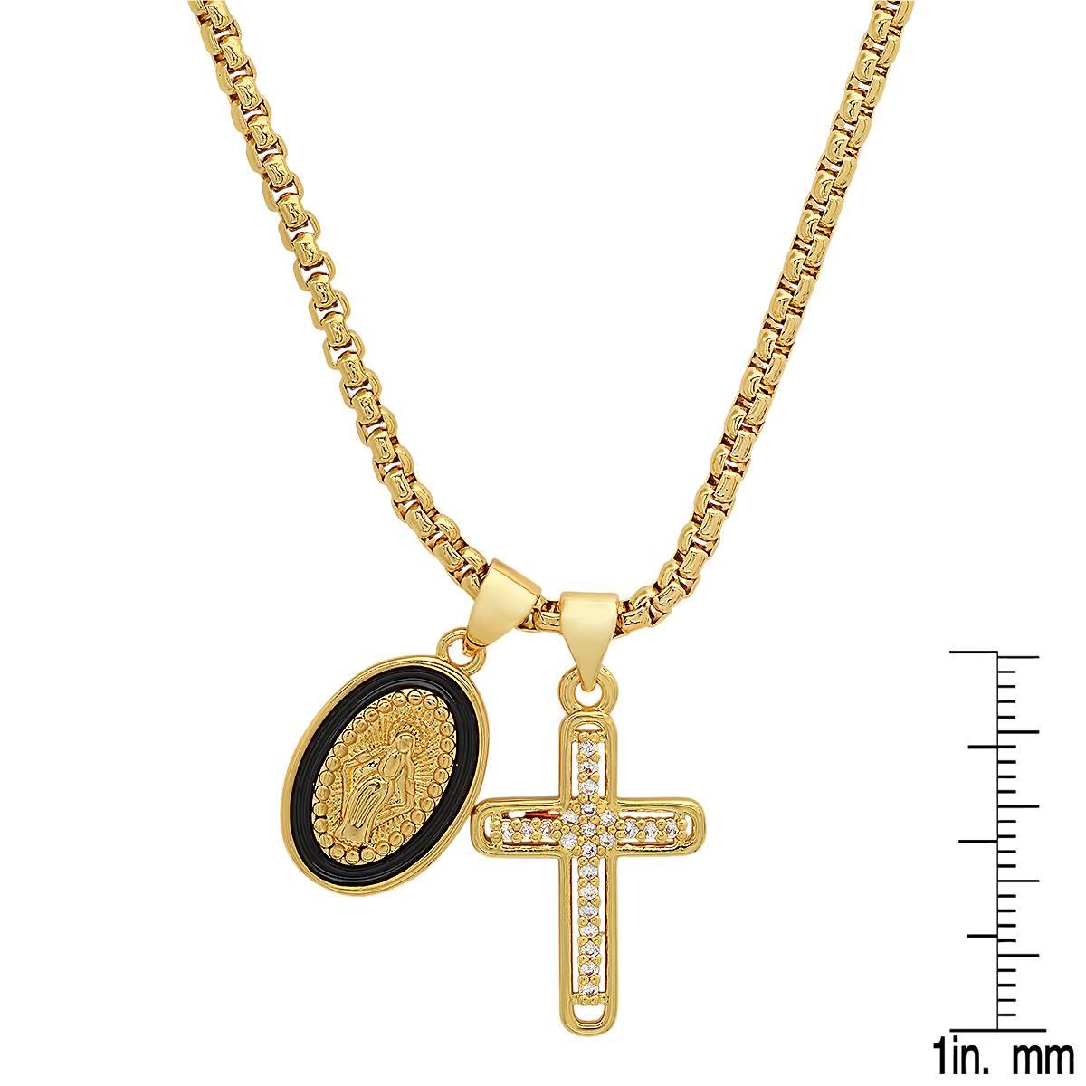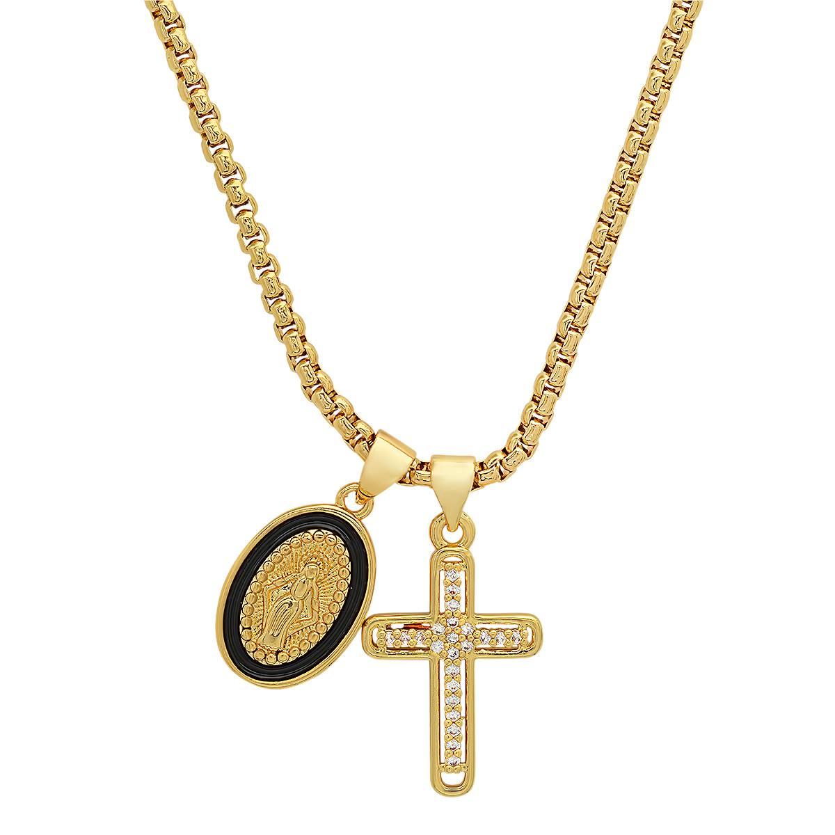 The Men´s Steeltime 18kt. gold-plated stainless steel necklace features a striking Virgin Mary and cross pendant adorned with simulated diamonds. The gold plating adds a rich, lustrous finish, while the intricate details of the pendant offer a blend of faith and fashion, making it a meaningful and eye-catching piece. Made of high-quality materials, using advanced coating technology to ensure that it won´t tarnish after long-term use.