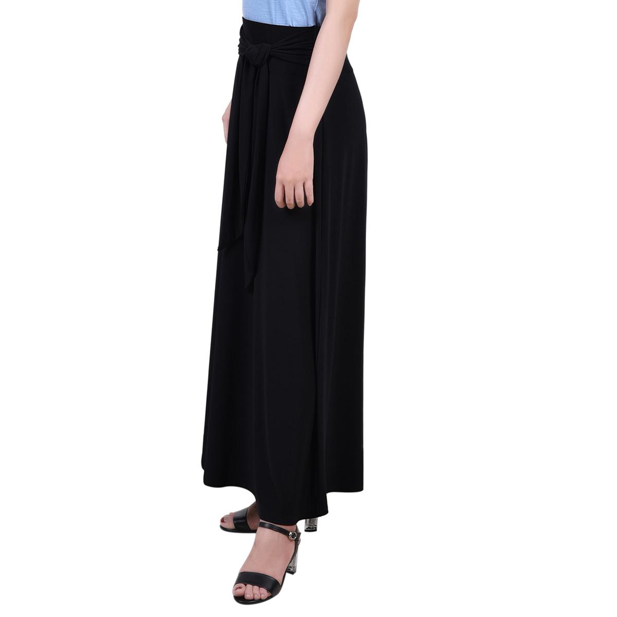 Petite NY Collection Solid Black Tie Waist Long Skirt