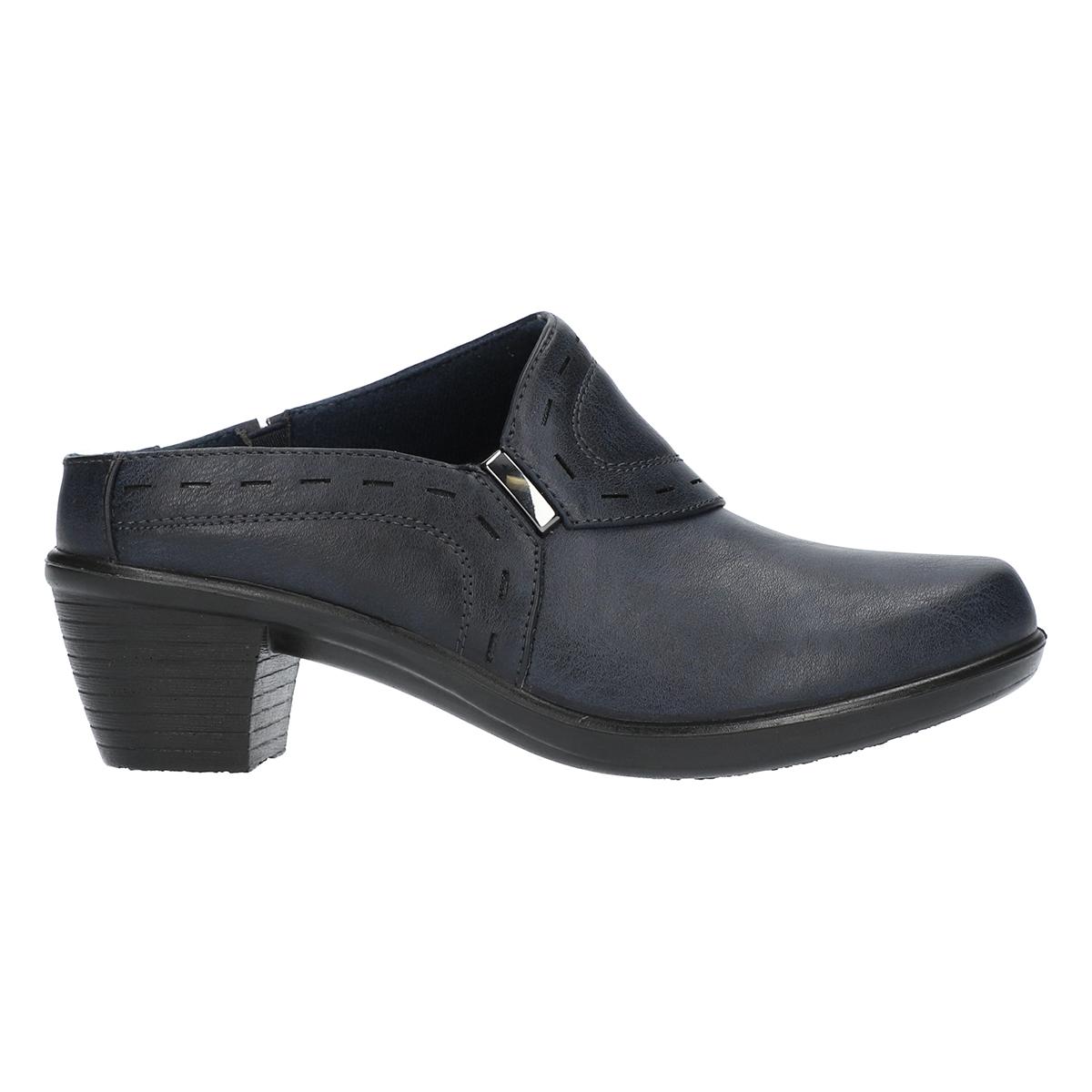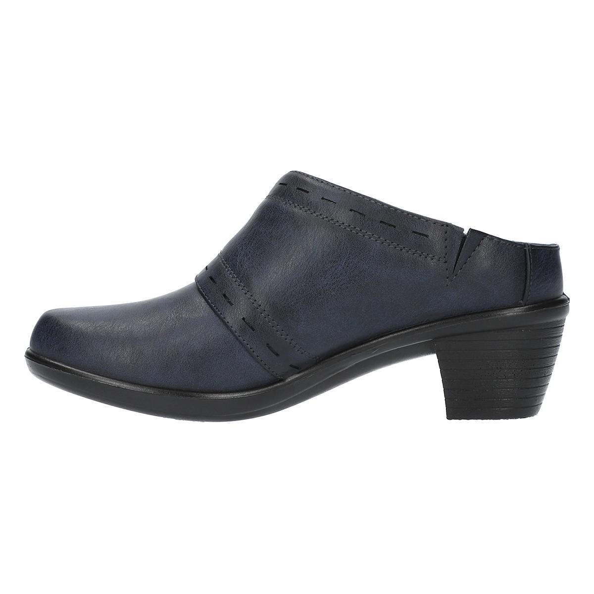 Slip into the Womens Easy Street Cynthia comfort clogs featuring a fresh PU upper design with ornamentation that meets comfort and style. With a fabric lining, PU outsole, and block heel. Enhanced with the Easy Motion ultra light insoles this heeled mule makes fashion functional.