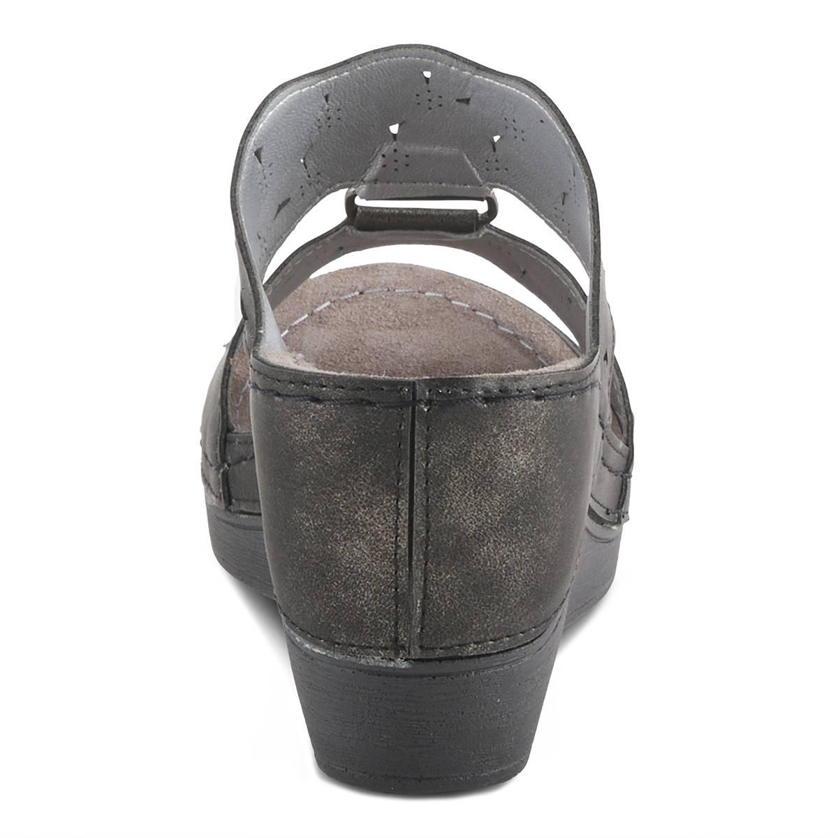 Stay on trend with these Womens Flexus® By Spring Step Dreiser wedge slide sandals. Features double straps and wedge heels that give a classy look.