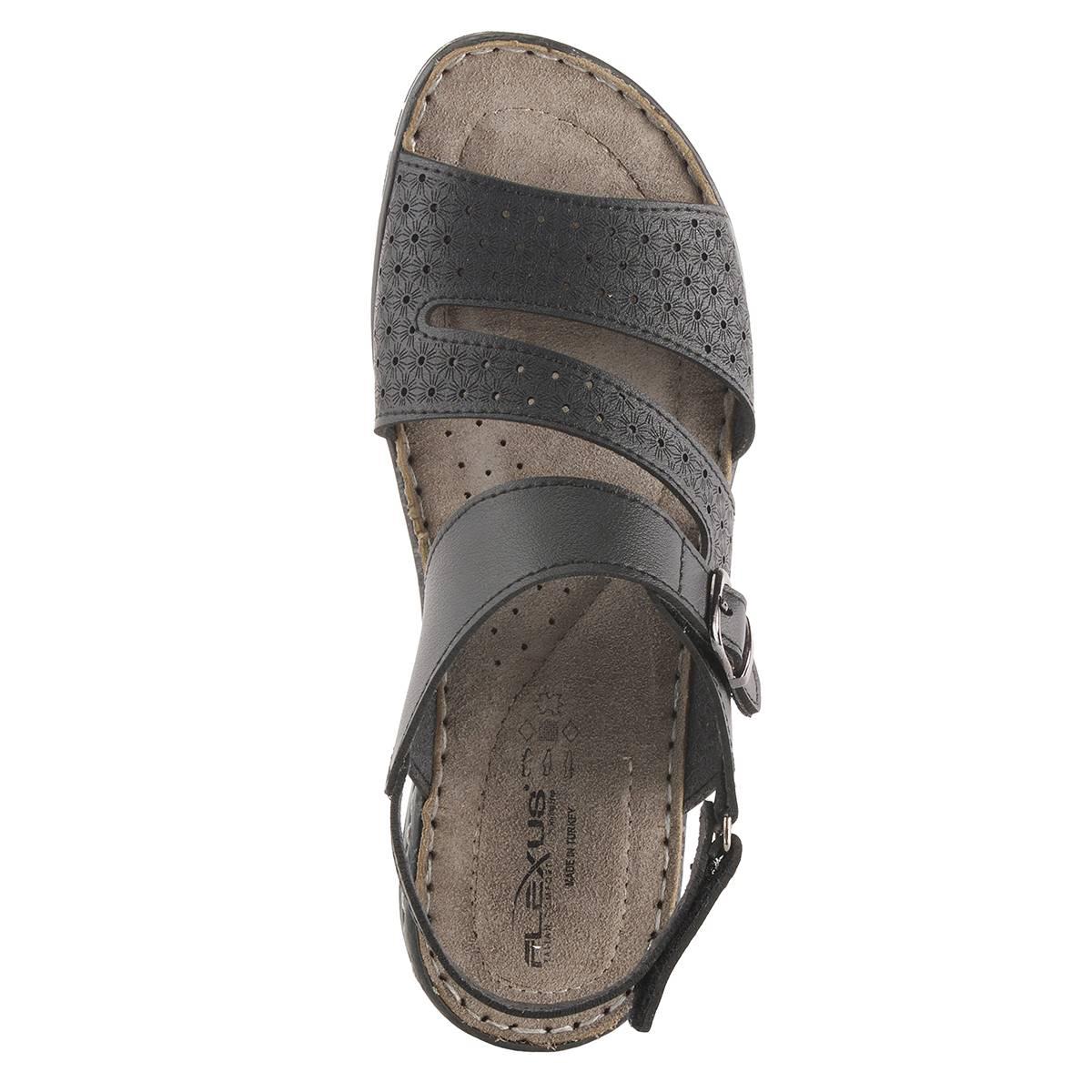 Get ready for the warm weather with these Womens Flexus® By Spring Step Harinna ankle strap sandals. Features a hook and loop adjustment in the back and on top with a decorative buckle. Includes a perforated floral design upper on a cushiony soft footbed.