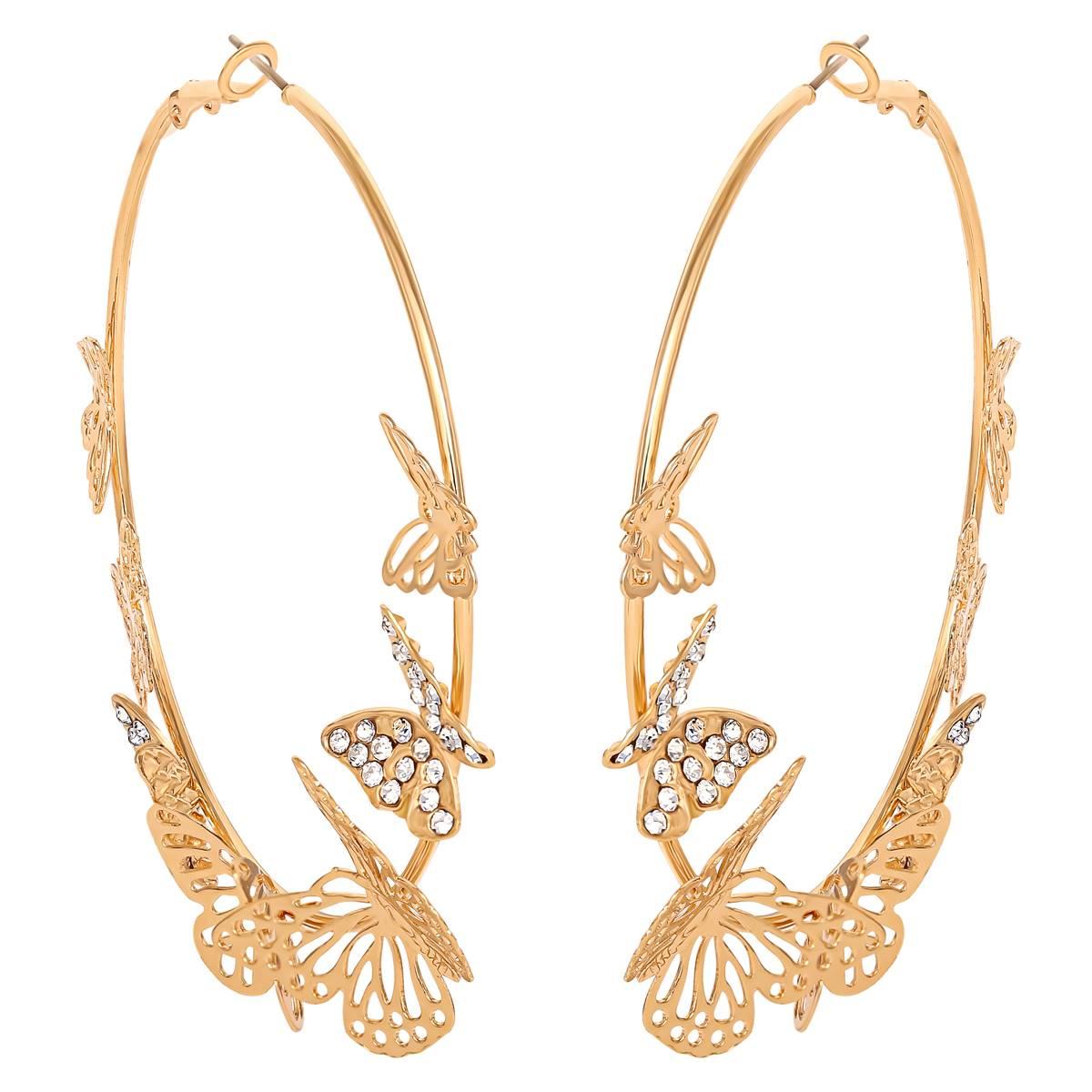Let your dreams be your wings while wearing the Jessica Simpson imitation yellow gold plated butterfly hoop earrings.
