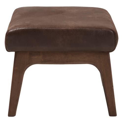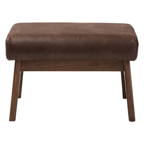 This Baxton Studio Bianca faux leather ottoman will bring plush comfort into your home with the vintage style. It has exceptional durability, stable comfort and is upholstered in distressed brown faux leather to give it a vintage feel. It is perfect for a modern or minimal interior and features smooth angular solid wood frame in dark walnut finishing for a nod to mid-century modern design that exudes warmth. Wipe with a damp cloth, either with or without a small amount of mild soap (test first), then wipe dry. Made from faux Leather and Rubber Wood. Dimensions: 15.4”H x 22.6”W x 18.5”D.