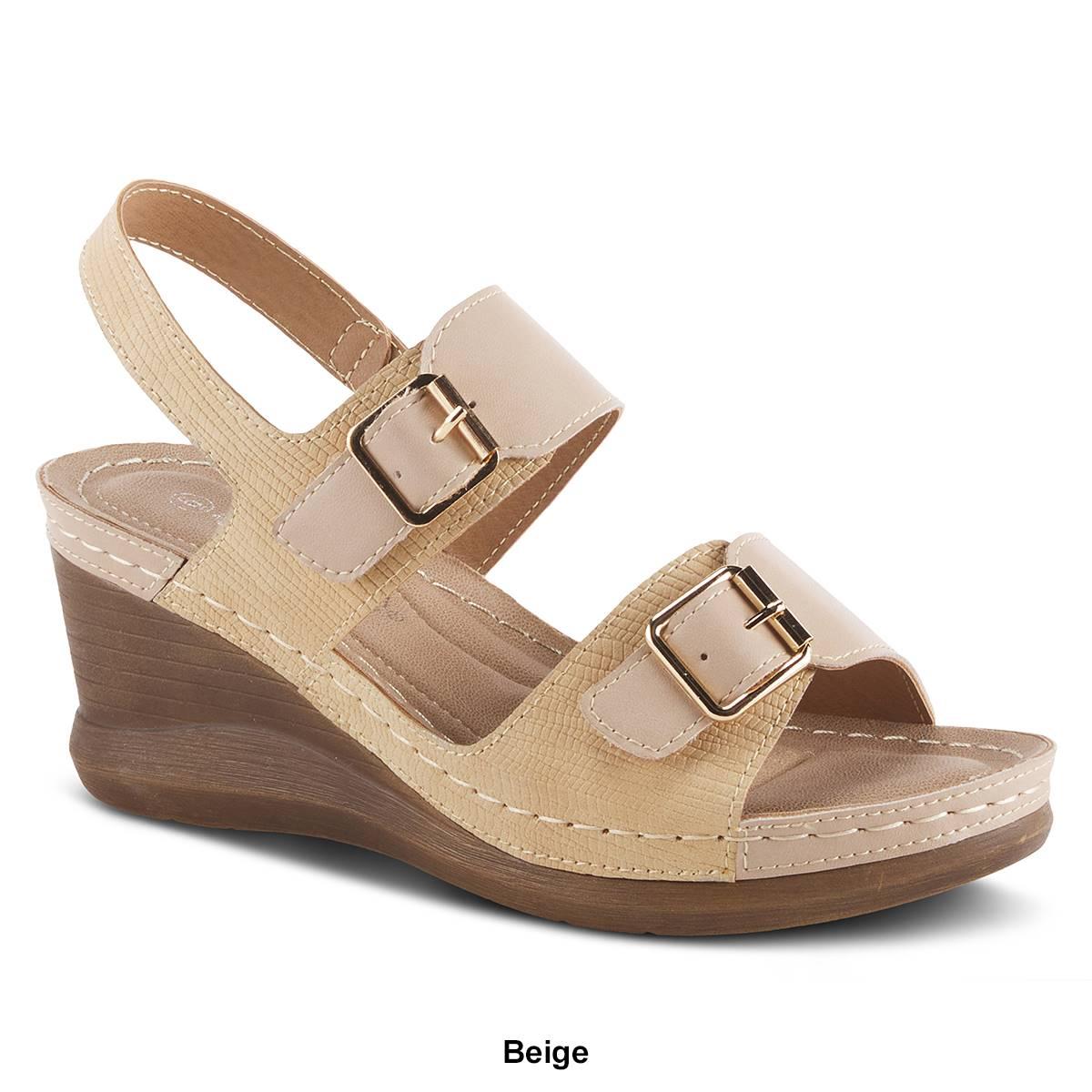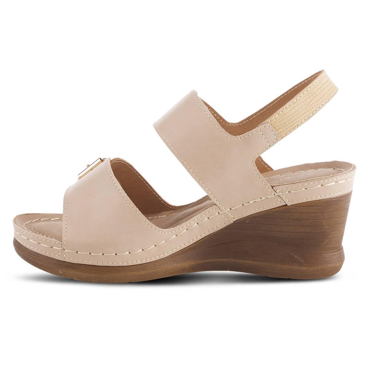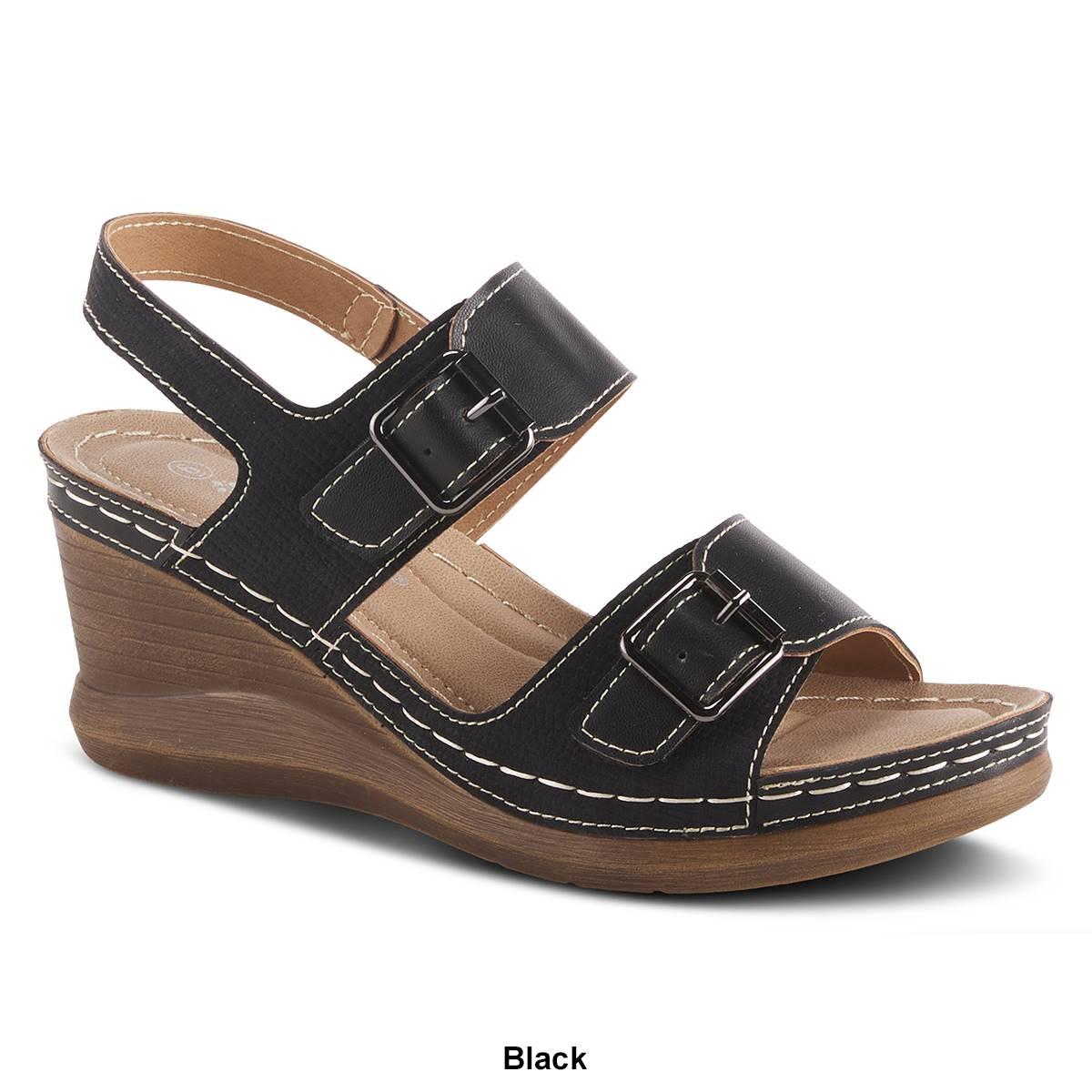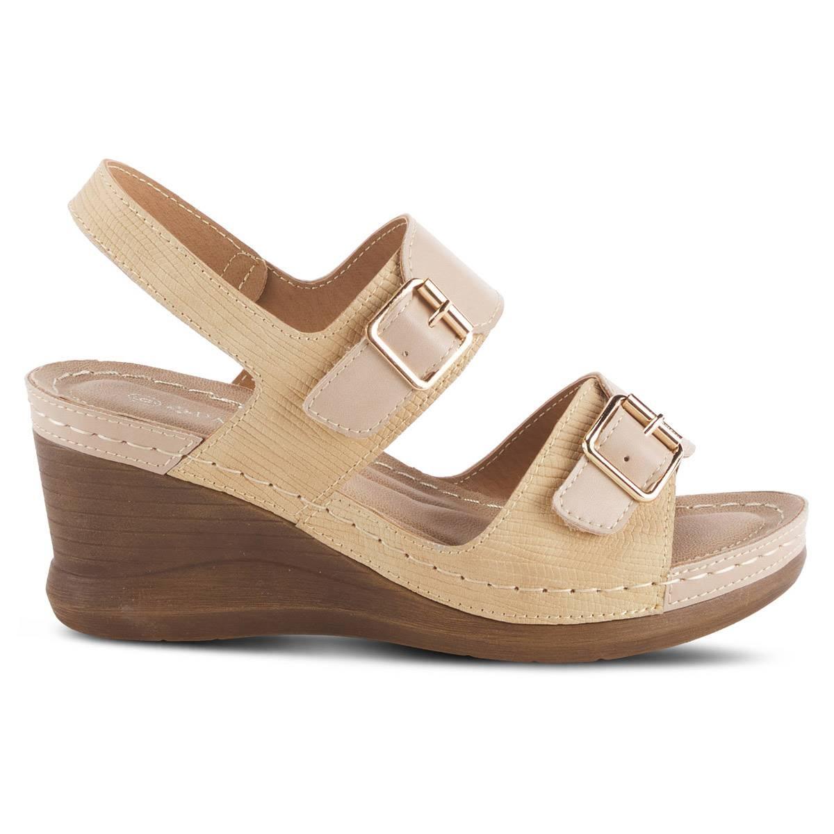 Get ready for the summer with these Womens Patrizia Tavlin wedge sandals. Features a back strap and buckle hook and loop straps that go across for security of the foot all day long.
