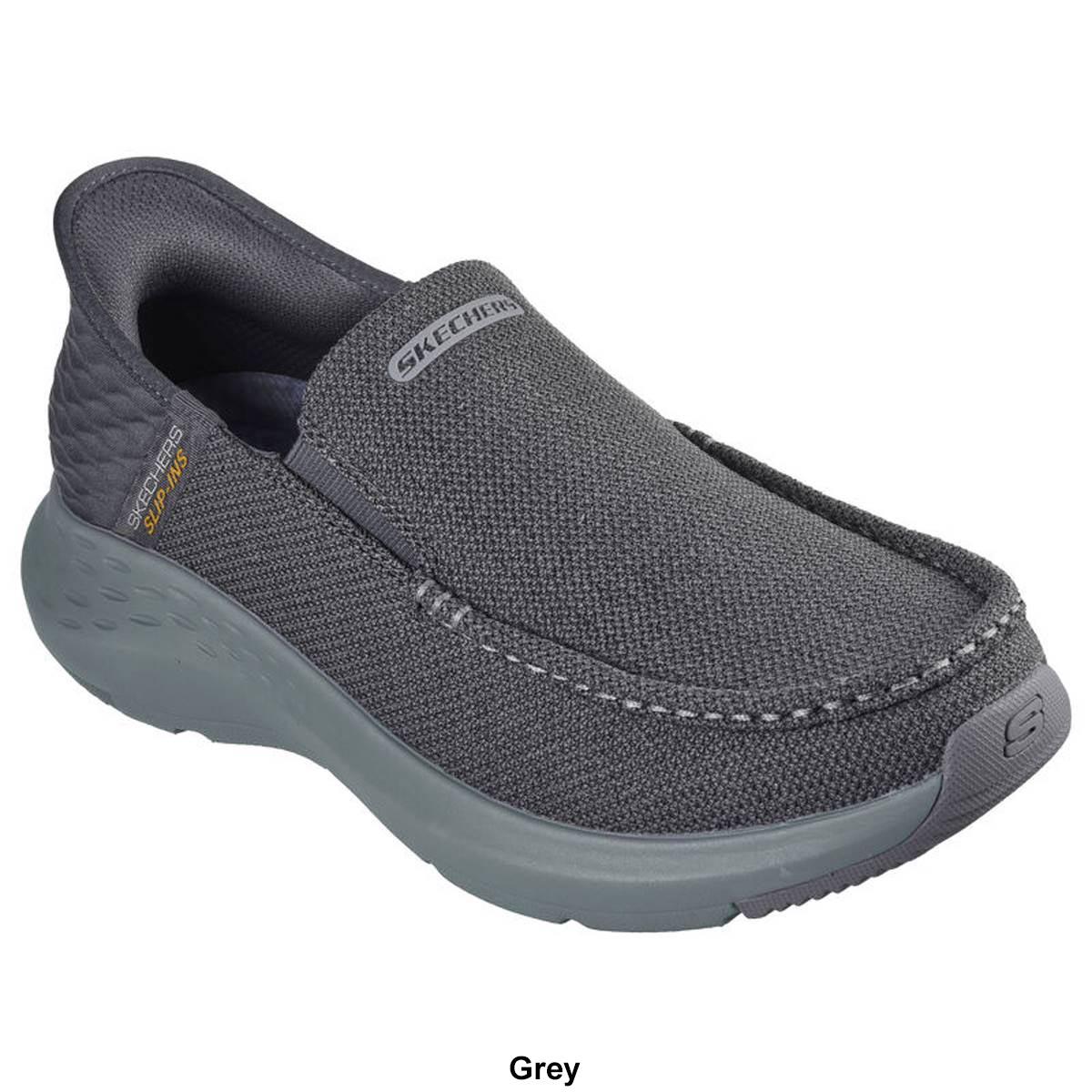 Description Simply step in and go wearing these Mens Skechers Relaxed Fit® parson ravlen fashion sneakers. Heel height: 1 1/4"Memory foamSlip onHeel pillowGoga Mat...