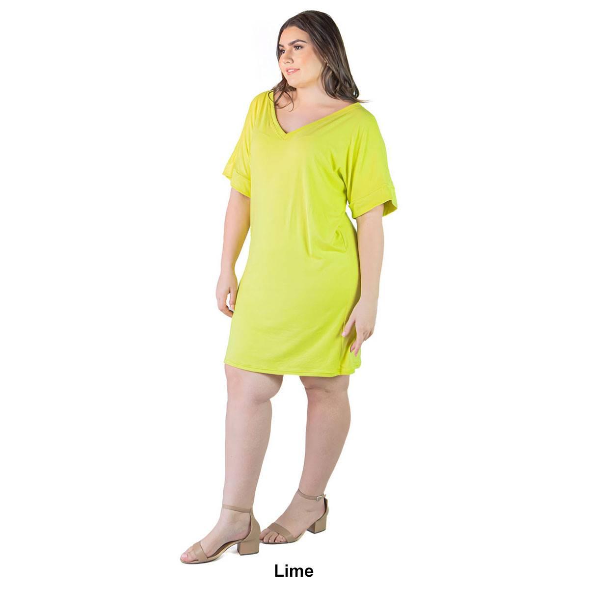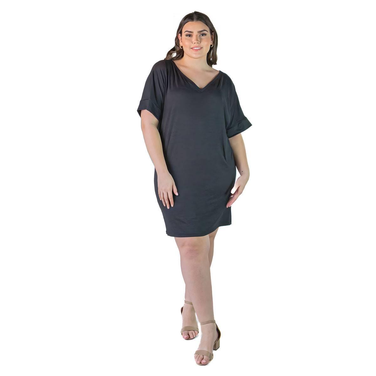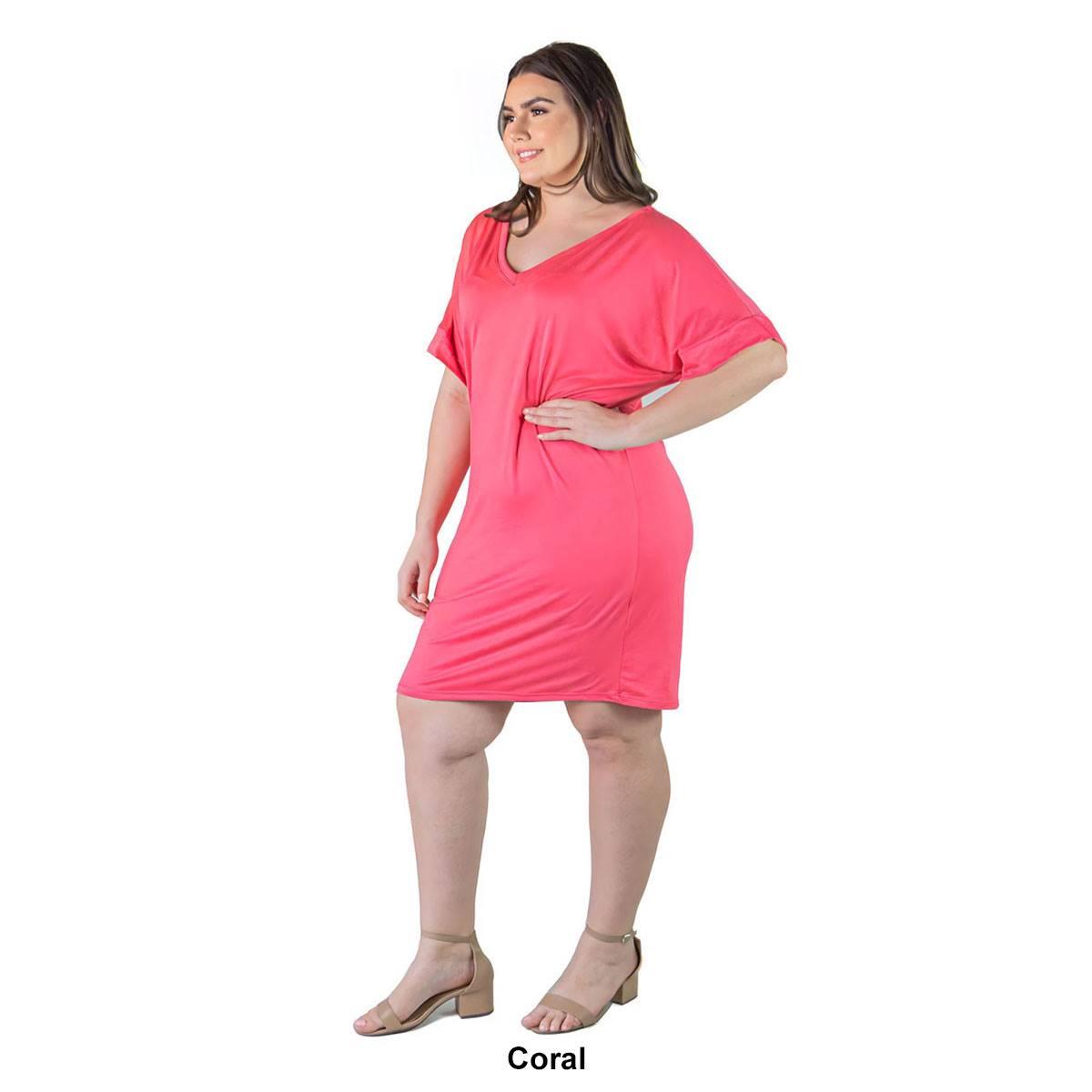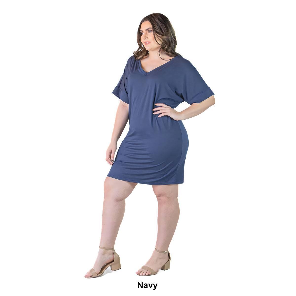 Description This Plus Size 24/7 Comfort Apparel v-neck knee length dress is the ideal supplement for your closet for the season. It´s made of a stretchy material, so you can...