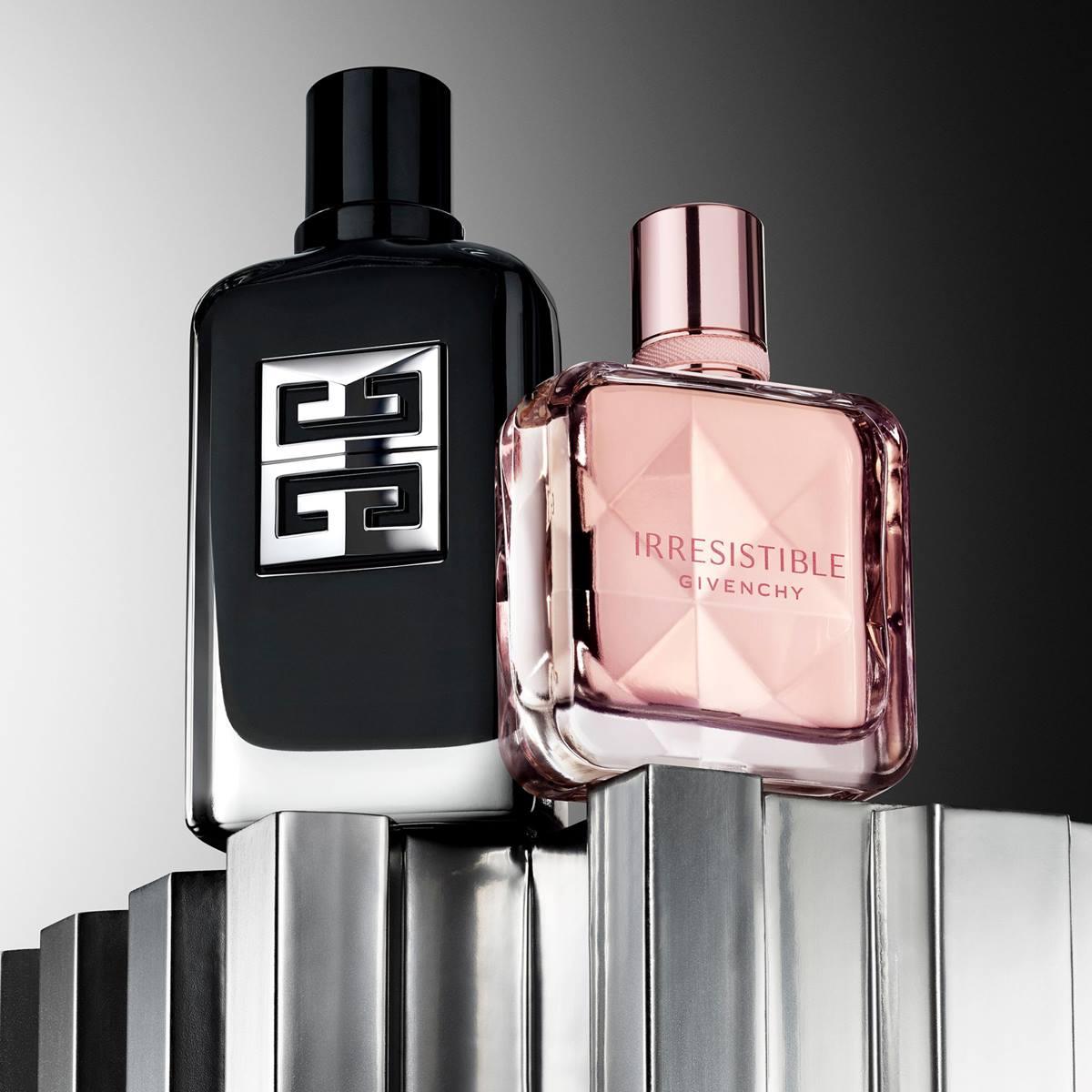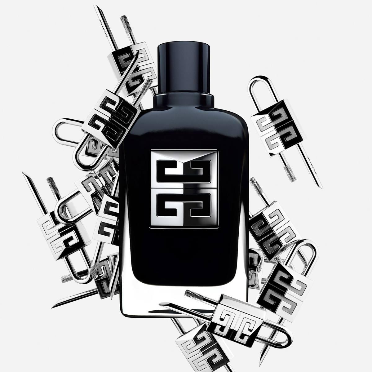 A bottle inspired by Givenchy couture, crafted for a refined look and made from 15% post-consumer recycled glass. The deep black lacquer finish is completed with a new twist on the Givenchy signature silver-metal 4G logo.
