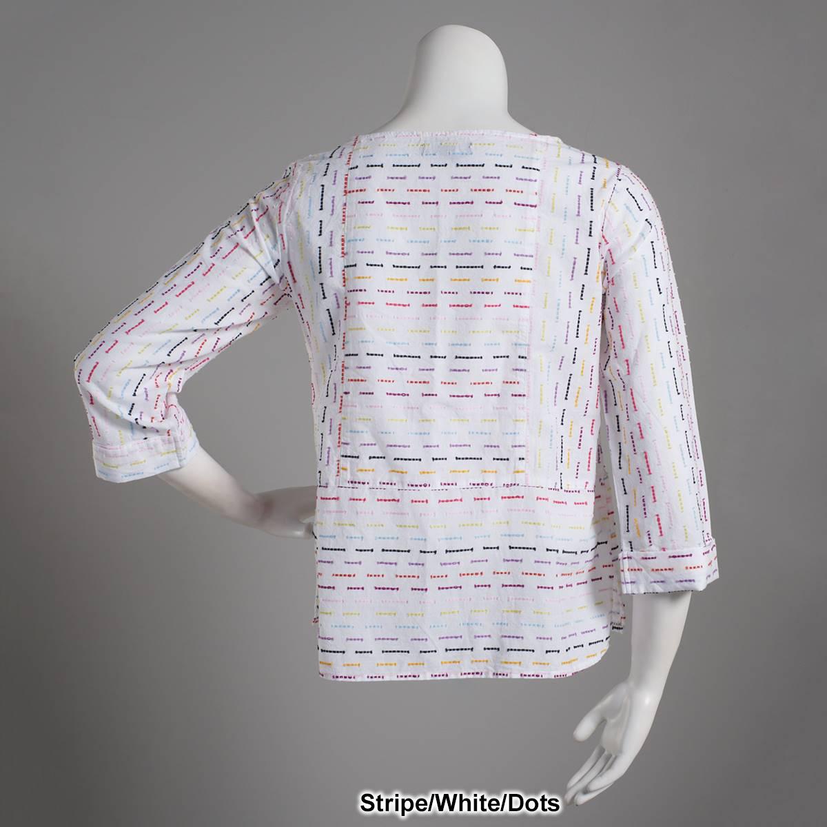 Womens Erika 3/4 Sleeve Clip Dot Stripe Tunic Blouse