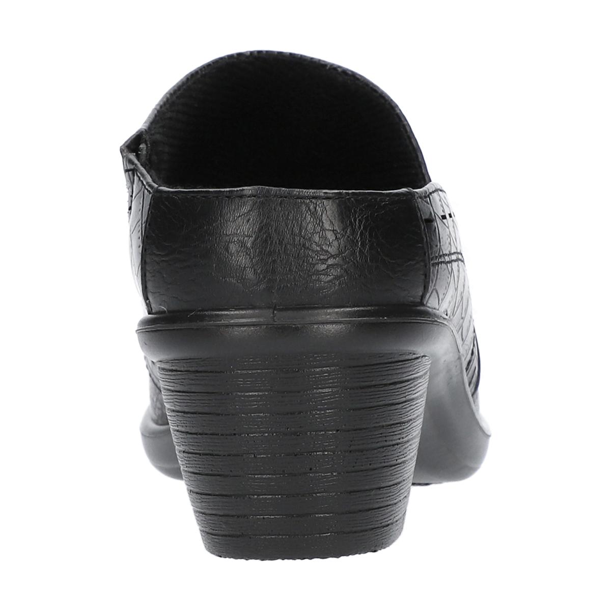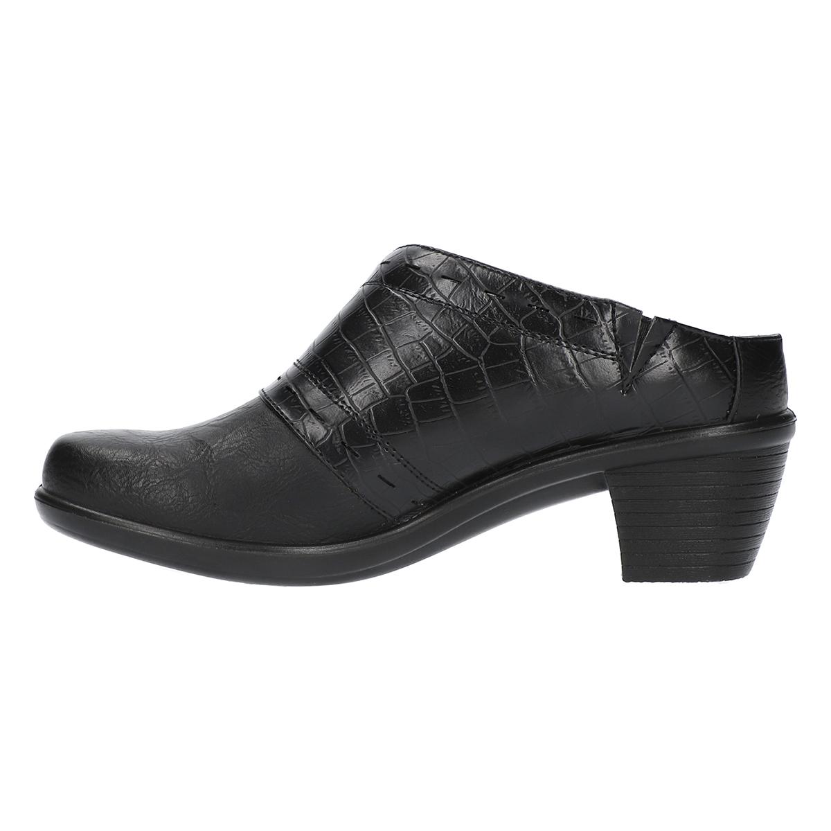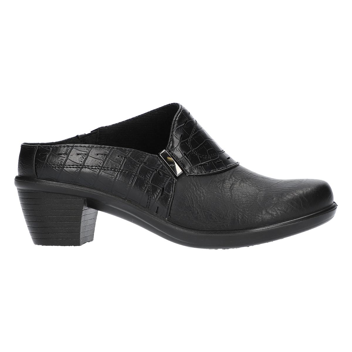 Slip into the Womens Easy Street Cynthia comfort muless featuring a fresh PU upper design with ornamentation that meets comfort and style. With a fabric lining, PU outsole, and block heel. Enhanced with the Easy Motion ultra light insoles this heeled mule makes fashion functional.