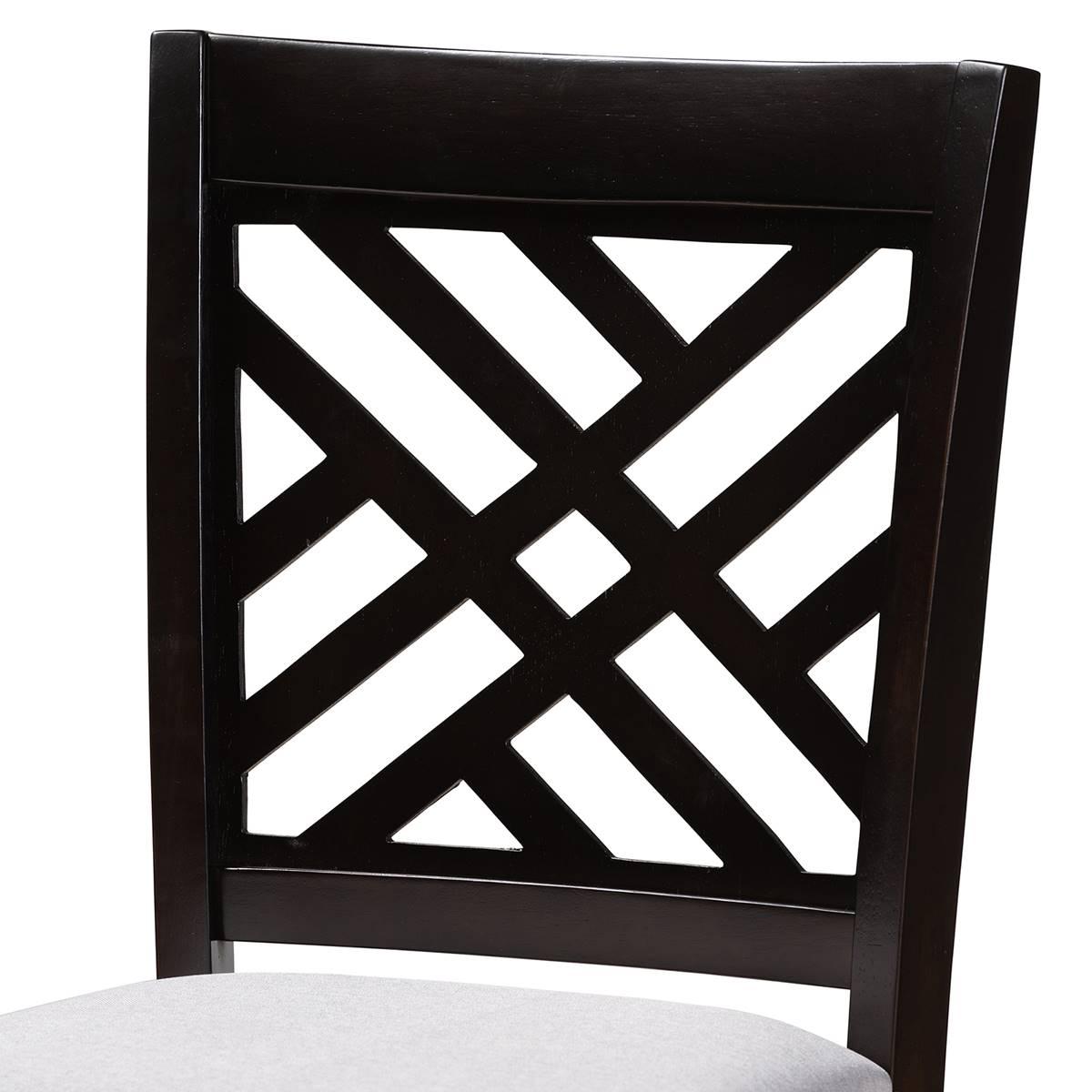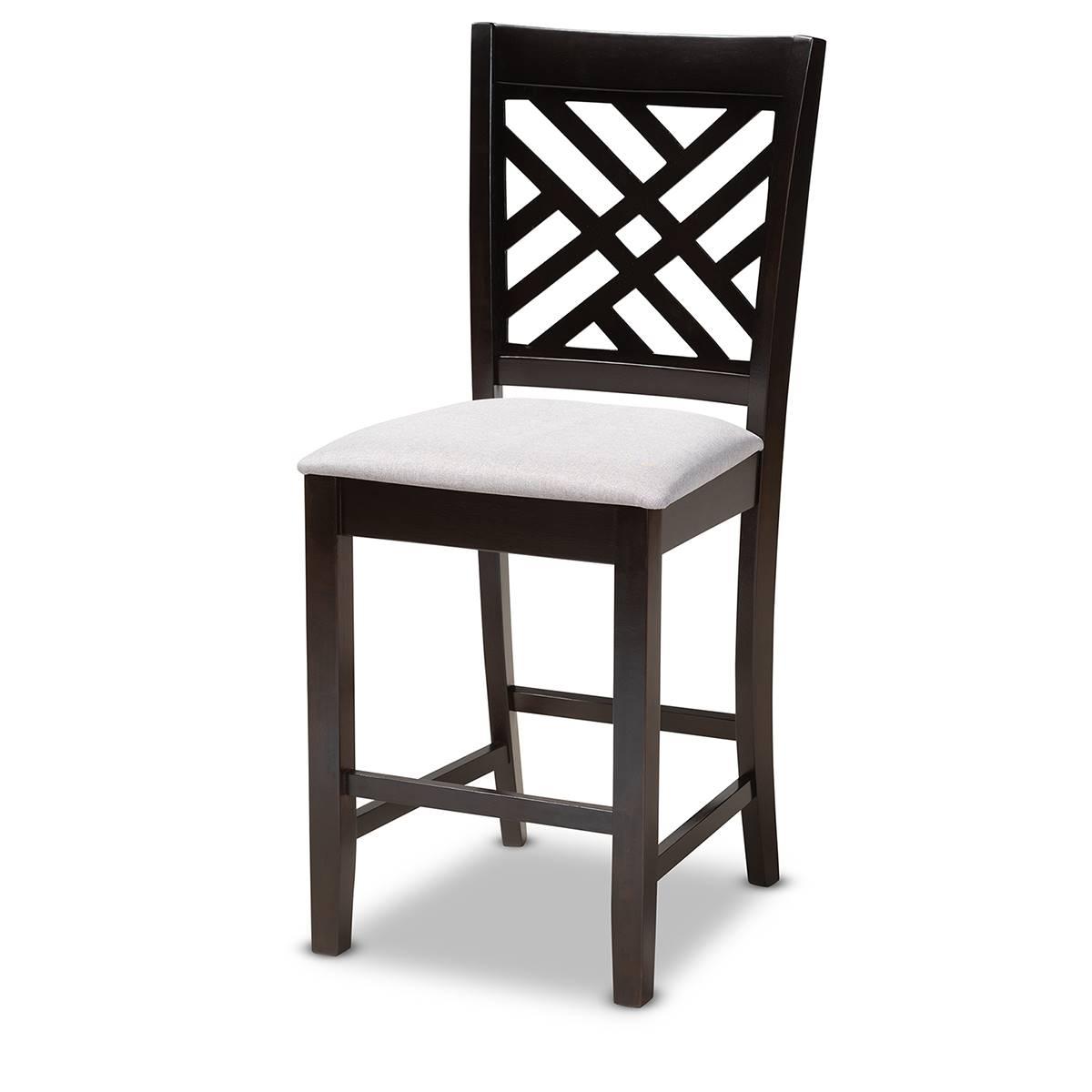 This Baxton Studio Caron 5 piece wooden pub set is a great way to reinvent any dining space! Constructed with wood, this dining set includes one table and four chairs, each upholstered in a light polyester fabric that complements the rich espresso wood finish. Designed with both comfort and style in mind, each chair features a plush foam-padded seat, as well as an exquisite cut-out design on its back. The compact size of the Caron set makes it well suited for dining rooms and kitchens with limited space.