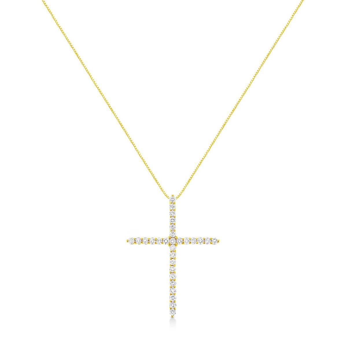 Description Share your faith with this Haus of Brilliance 10kt. gold plated 3.0ctw. diamond cross pendant. The cherished cross necklace features 29 natural round-cut diamonds set...