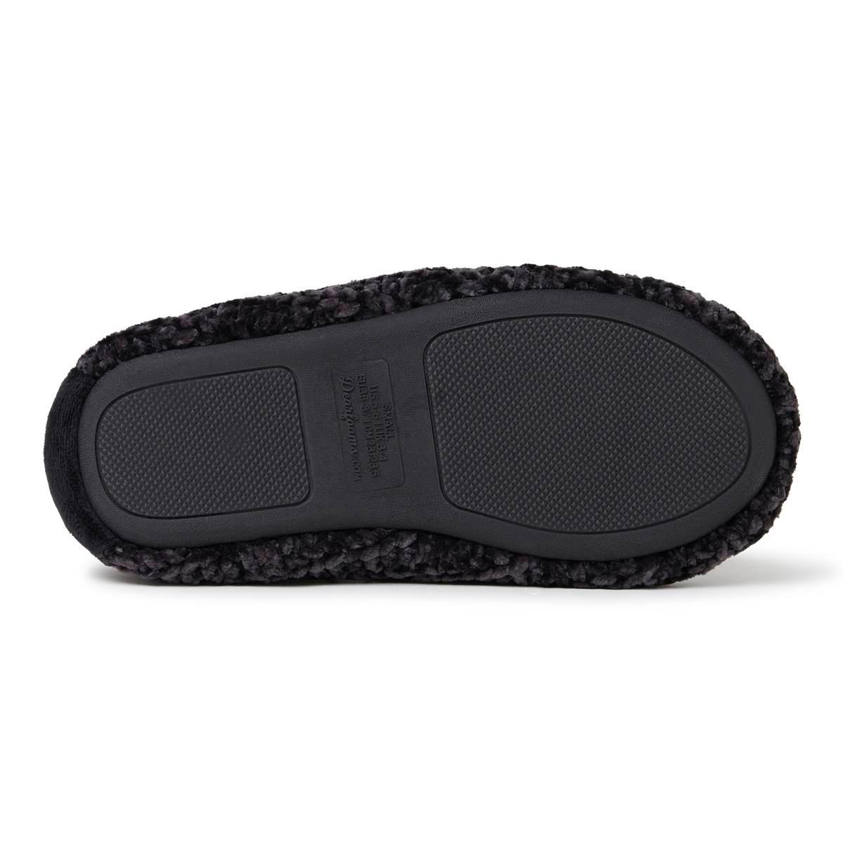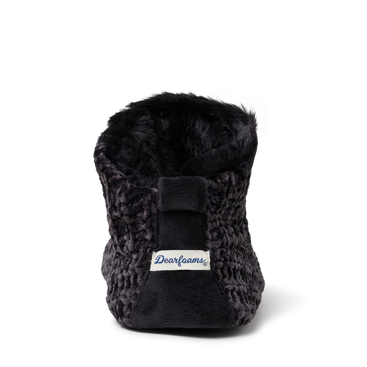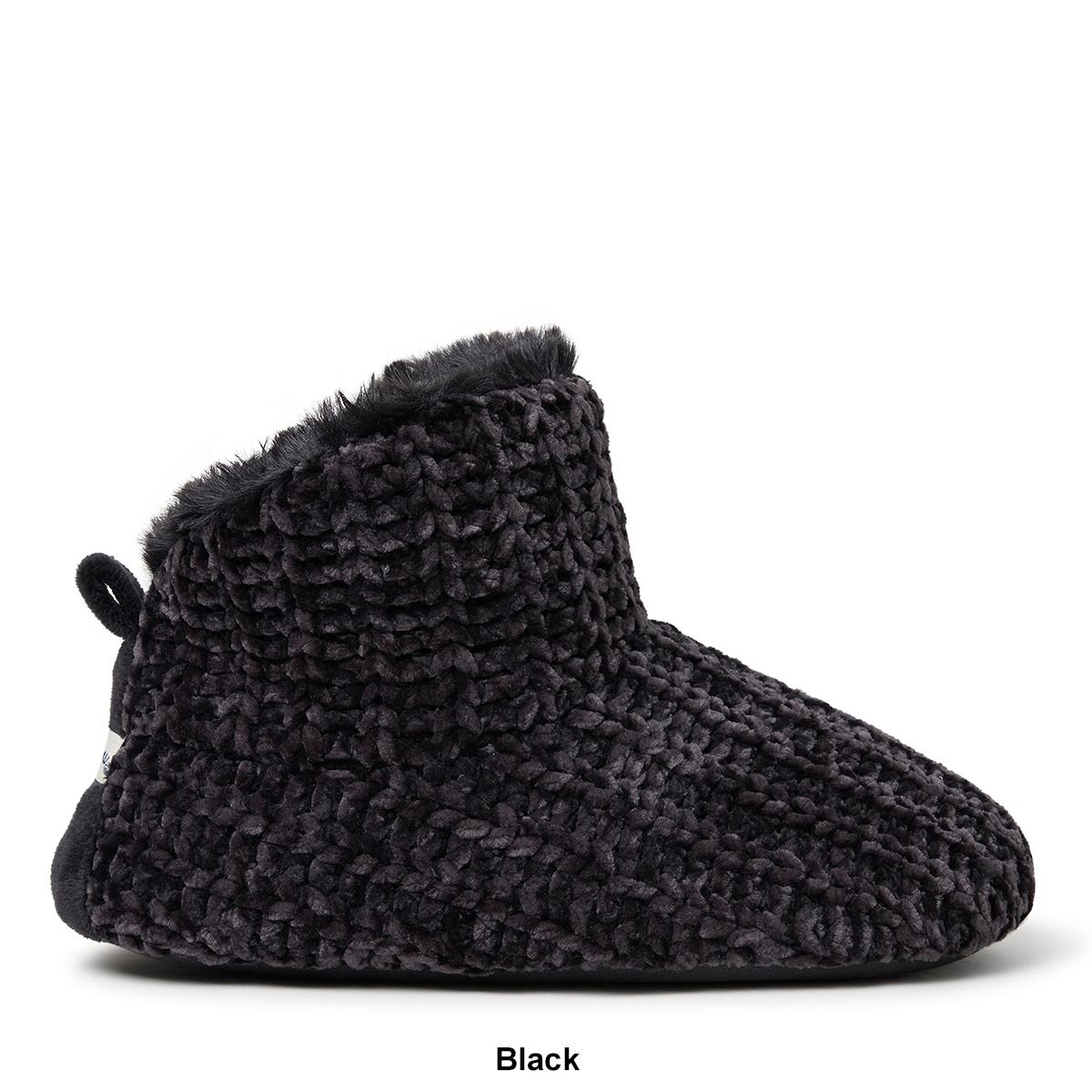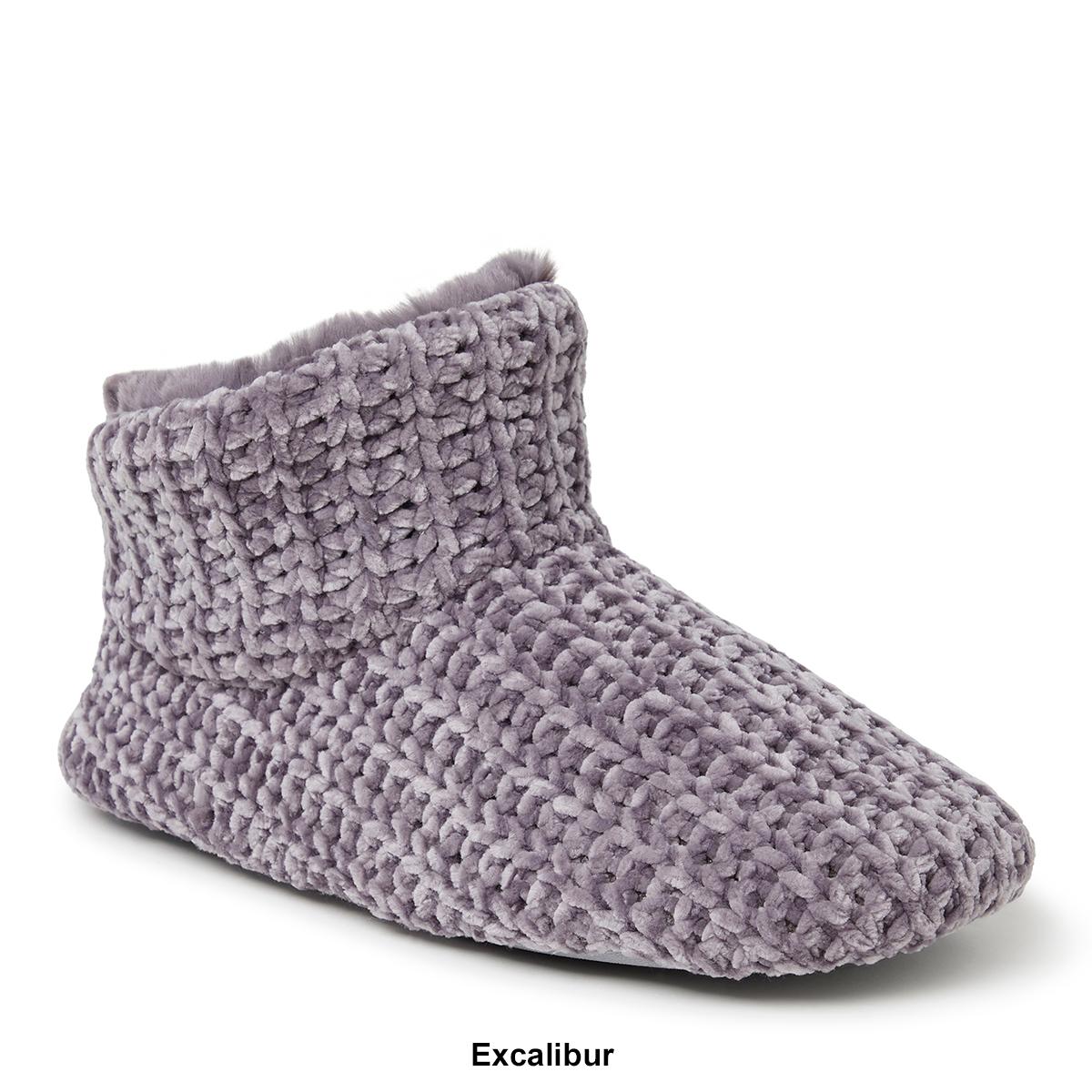 Description Try these Womens Dearfoams® luxe chenille botties that have a plush lining, and cozy memory foam cushions combine to create the perfect slipper for stress-free...