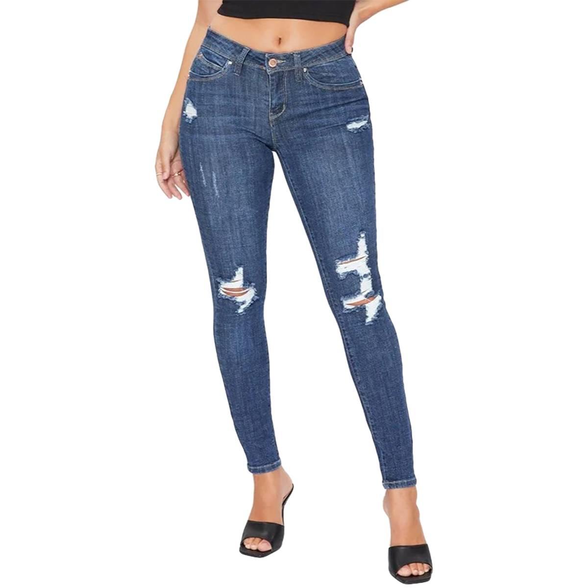 Description The Juniors YMI® Wanna Betta Butt Premium Distressed Skinny Jeans are a perfect stylish addition to your wardrobe. These mid rise denim bottoms feature classic...